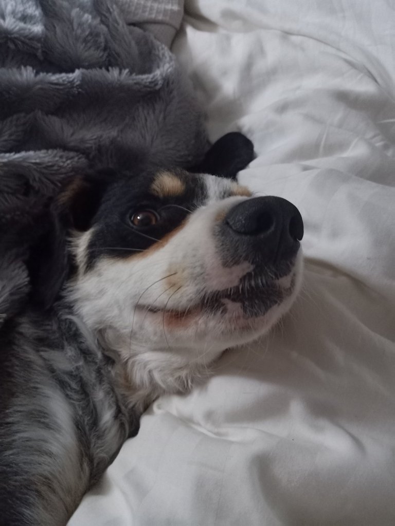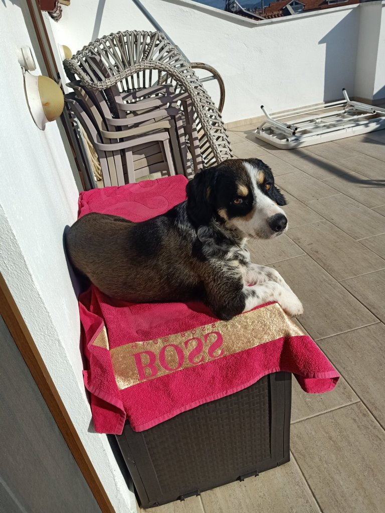 I took Charlie out for a decent walk first and was walking him back, off the lead, through the garden. It looked like some neighbours had moved in downstairs but I’d not met them yet and I was looking over to see. Charlie found some green sloppy poo on the grass and decided to roll in it, then rub his face and ears in it! I was disgusted and shouted for him to stop straight away, he ignored me so I had to pull him off the grass, using the bit of his collar not covered in shit. I had less than 1 hour before lunch so he and I were straight in the shower where I wished they had a hose, and not just the overhead one. I panicked and used Abi’s Body Shop banana shampoo which worked a treat but Charlie was not too thrilled with it. I made him sit outside on his box to dry off, convinced he still smelled of poo!!!