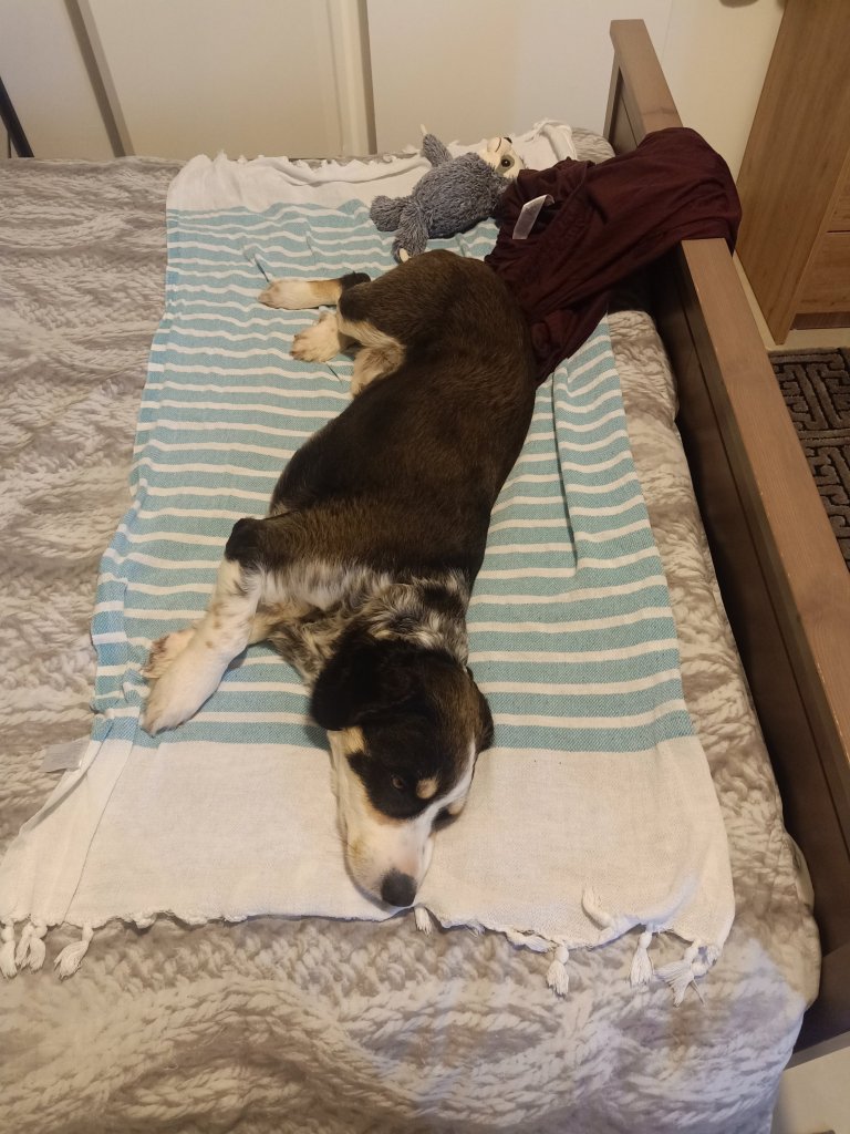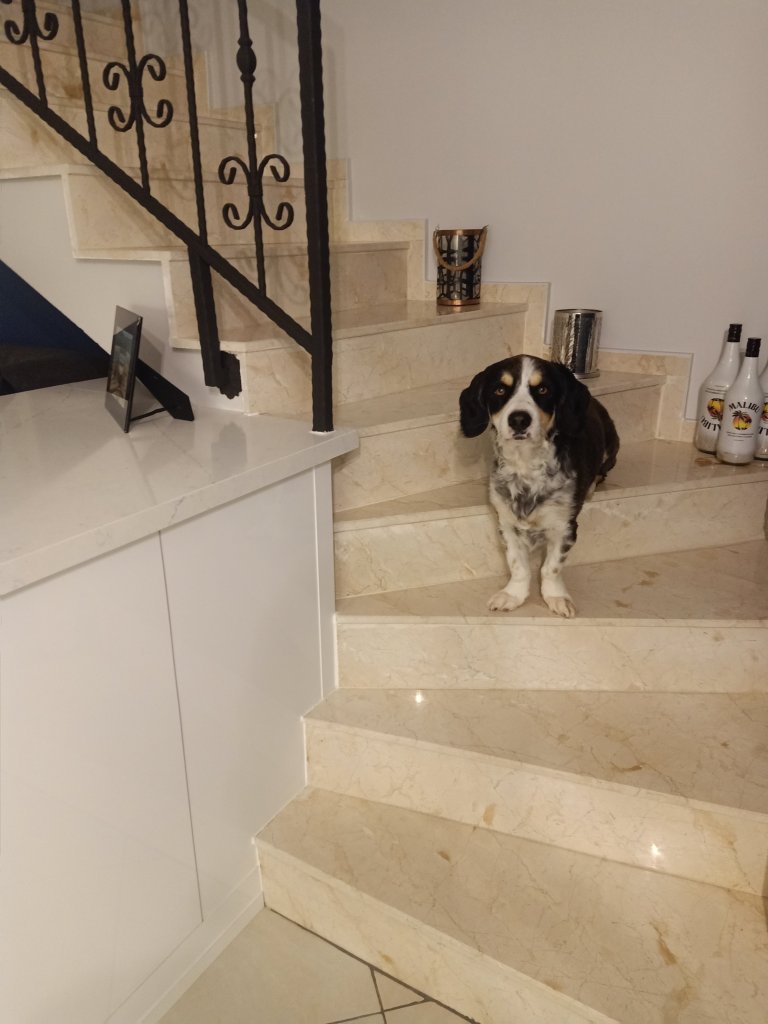 On Thursday 5th January it was cold when I got up to let the dogs out. I made a cup of tea, fed them, then we all went back to bed. The dogs were getting used to each other a little more, which was nice, and I had a feeling they would be best friends by the time Jamie got back home. I had cornflakes for breakfast while Charlie and Edna were sunbathing. I’d even brought a sun lounger near to the back door, popped a towel on it and was able to keep an eye on them from my stool at the breakfast bar. Norman remained inside but Edna got too hot in the sun and had to come inside to cool down after a while. There was a lamp on the breakfast bar which was constantly on so I had to message Jamie to ask how to turn it off, he laughed that I couldn’t figure it out. I took a few photos to send him of the dogs so he knew they were doing fine without him. I did more editing but then got summoned to go over to meet the plumber at Charlie’s apartment because they had come to try to fix the leak which was still going in to Katrina and Mehmet’s bathroom, below. It had been going on for more than a month now and was getting ridiculous as no one seemed to know where the problem was. Charlie had taken himself off for an afternoon nap and I didn’t know how long I would be gone for. I booked Louisa’s taxis from and to the airport, for her trip to see me next week, while I waited for them to finish.