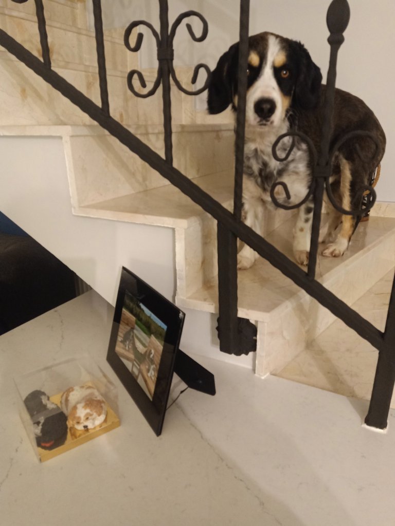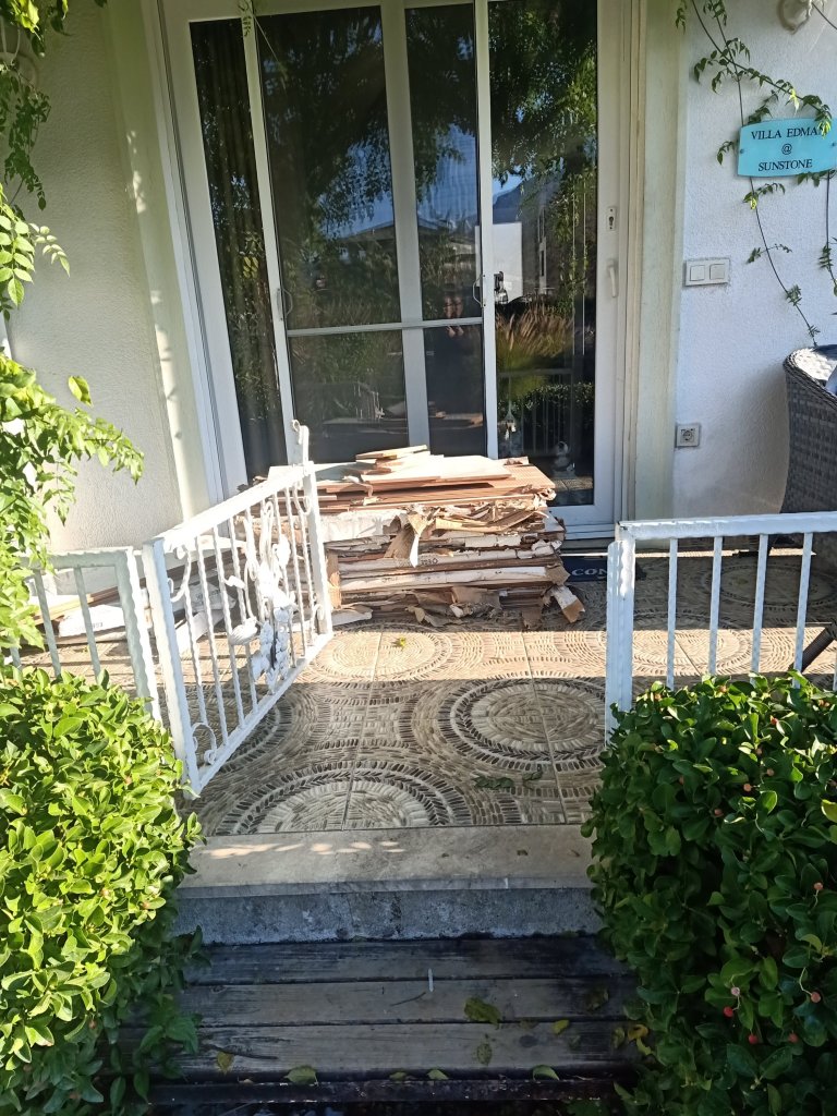 I’d been less than an hour out of my day when I got back to Jamie’s to another ‘situation’. He’d told me he had ordered some bathroom tiles at a bargain price and they had been delivered while I was out. Not only were they placed right in front of the patio doors where the entrance to the villa is, but a lot of them were broken. I took a photo to send to Jamie so he could organise to have them moved and I noticed Edna and Charlie looking out of the doors wondering what was going on. I got in the house but decided not to let the dogs out until the tiles were moved and I could sweep up the sharp bits. I didn’t have to wait long, as 2 ladies from the Agent’s arrived promptly and moved each one by hand in to a more practical spot. By the time I had walked all 3 dogs and was getting back to my laptop, Captain Caveman called me to chat for the first time since he’d got to Phong Nha. Unfortunately, we had just started chatting when a Phong Nha friend turned up and Captain Caveman had to go. It was a good job the call was cut short as Charlie had spotted some cake toppers in the form of Norman and Edna, which he was trying to push on to the floor. I moved them and he tried again so I had to pop them in a cupboard. I finally got some food, quite late in the day, just a jacket potato with cheese and salad. I watched Dragon’s Den and The Apprentice in the evening then had a glass of wine and a piece of Christmas cake, courtesy of Jamie. It was quite chilly so I was glad of the dog snuggles until bedtime at gone midnight.