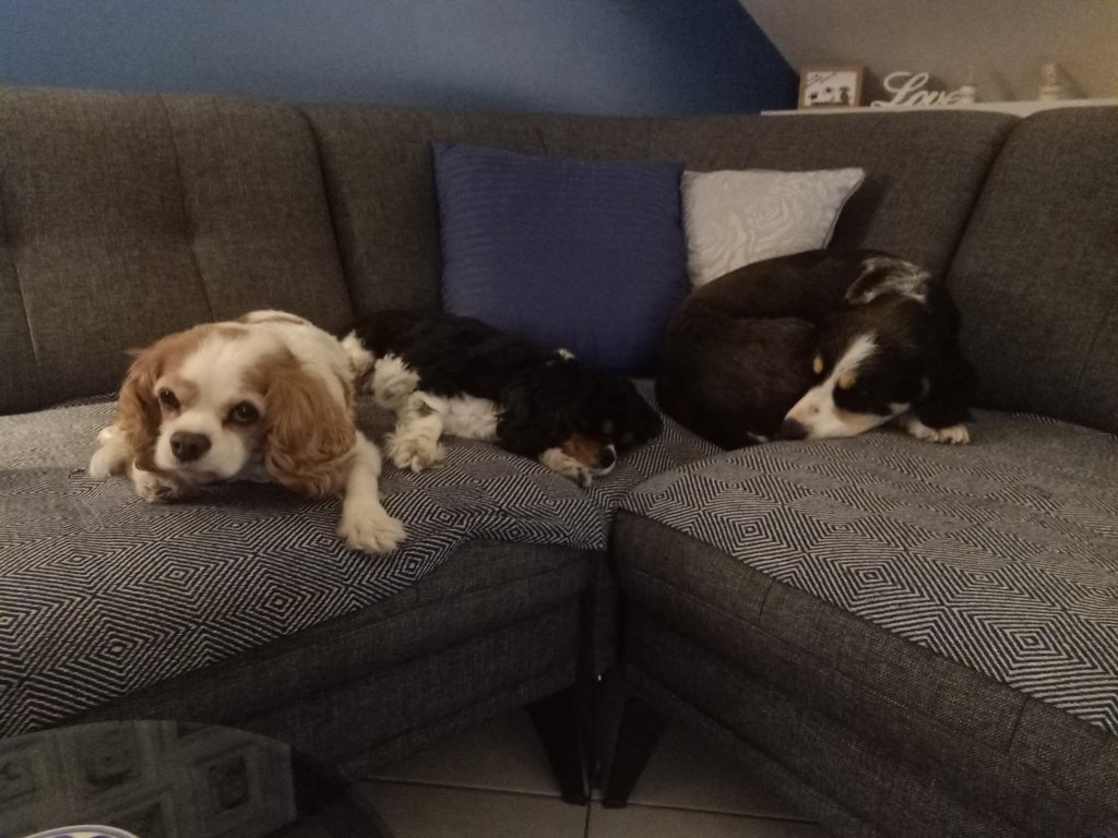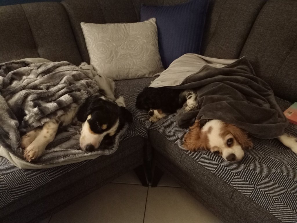 After letting the dogs out and feeding them, Norman insisted that we all go back to bed. I obliged and, this time, Norman had priority place next to me while Charlie and Edna were near my legs. There was lots of snoring and farting during an extra lay in, and that was just the dogs! By 11am I decided we were all being far too lazy and that we should get up and go for a walk. I wouldn’t say I’d mastered it, but we were now all 4 of us comfortably walking without me being tied up in dog leads. It was clear that Edna was the boss but I loved how well behaved Charlie was on his lead. When we walked near his house we saw Milo (the dumped dog) again and I spoke to the neighbour to check if it was their’s. This time we took photos and posted on Facebook to see if we could find the owner. It turned out the owner had been traced but didn’t want the dog, Milo had now moved in to the vestibule of Charlie’s apartment block and was being fed by two of the kind neighbours. Charlie wanted to be friends with him but there was no way I could surprise Jamie, or Helen & Abi, with a new dog.