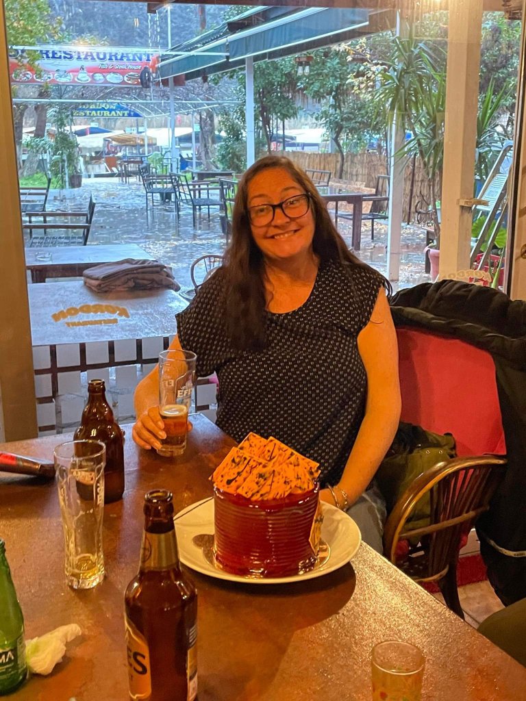 Unfortunately, it was past 9pm and Waterfall had already closed so Mark and Kate dropped us off at Jamie’s. When we got out of the taxi the water was ankle deep on the road and the pool had overflowed. Once inside the villa I tried to let the dogs out on the back garden but they took one look at the weather and decided they weren’t going out there. Meanwhile, some friends were on their way from Fethiye in torrential ‘stay at home’ weather as they wanted to see me on my birthday. They arrived at Mark and Kate’s 2 hours late at 10.30pm by which time everyone was ready for bed. They ended up staying at Mark and Kate’s and I declined to venture over there because it was so late and awful weather. Louisa and I had more drinks as we’d only had 2 in the 6 hours at Kordon and stayed up chatting for ages. By the time I got in to bed that night I was begging for mercy as I set my alarm for 8am. It wasn’t the birthday I’d planned but it was still one I’d remember.
