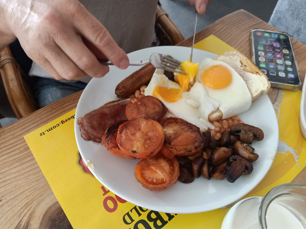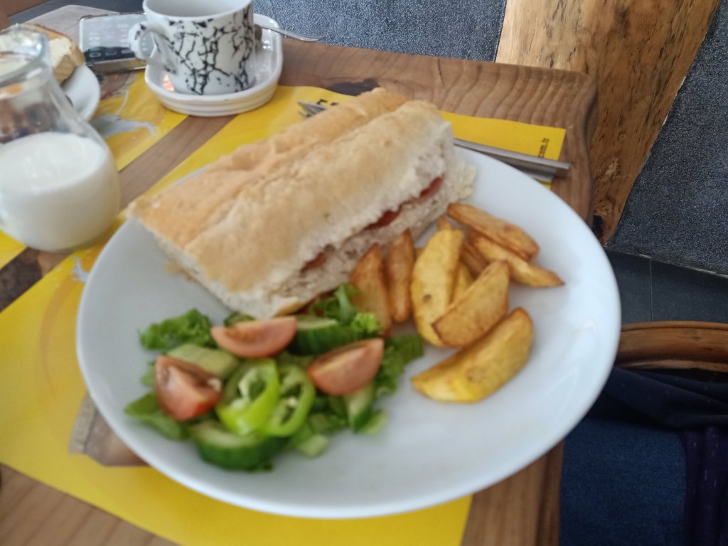Louisa and I left the dogs at home to meet Mark and Kate at Ela’s Kitchen for breakfast at 11am. Our Fethiye friends had left early that morning so I sadly didn’t get to see them but they had given Kate a bottle of wine to give to me for my birthday – how lovely. For breakfast I had the big breakfast but agreed to do swaps of my eggs and tomatoes for Mark’s mushrooms on his small breakfast. Kate ordered a Chicken club sandwich and Louisa a bacon sandwich. I absolutely love the breakfasts in Ela’s and they have proper English tea too.