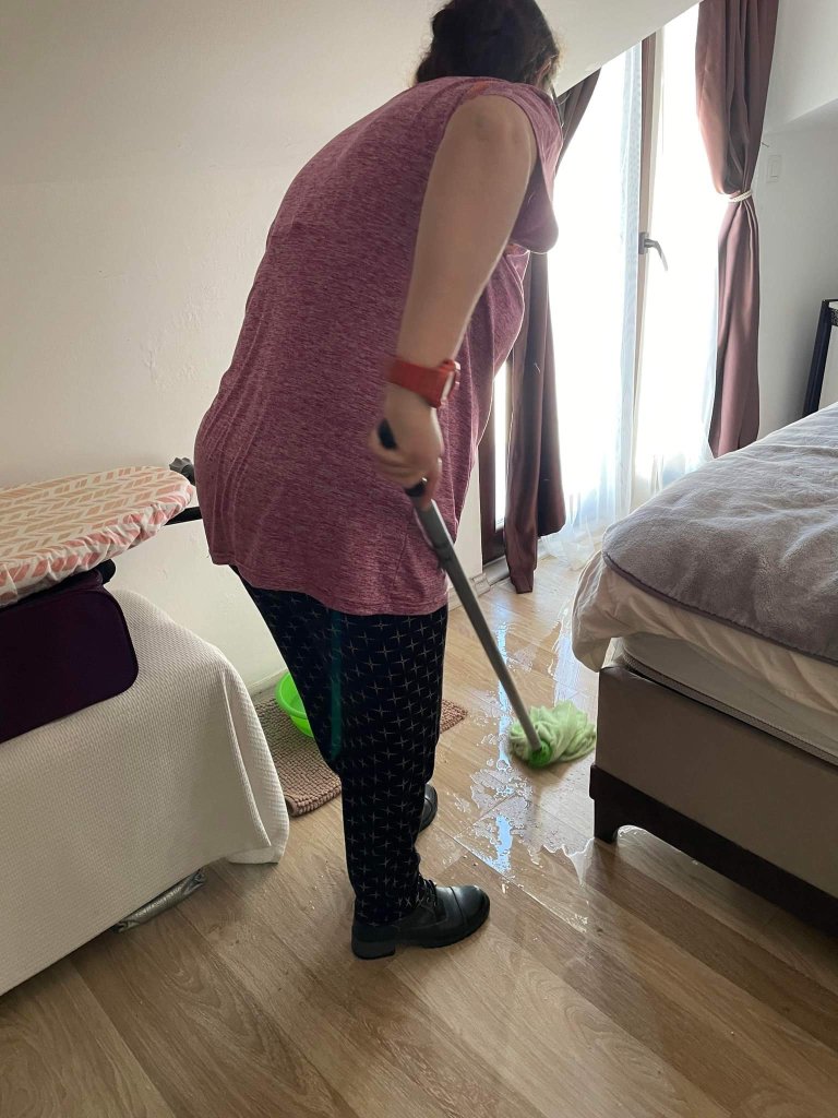 In the afternoon, Louisa and Kate came with me to Charlie’s apartment where they helped me clean the remains of any flood water up. It wasn’t as bad as I’d thought and it was just in the main bedroom. We also emptied the freezer and fridge to take the stuff to Jamie’s so that if the electric had to be turned off, nothing would spoil. We saw Milo and he now had a crate with a blanket in from Katrina so that he was warm until his new owner could collect him.