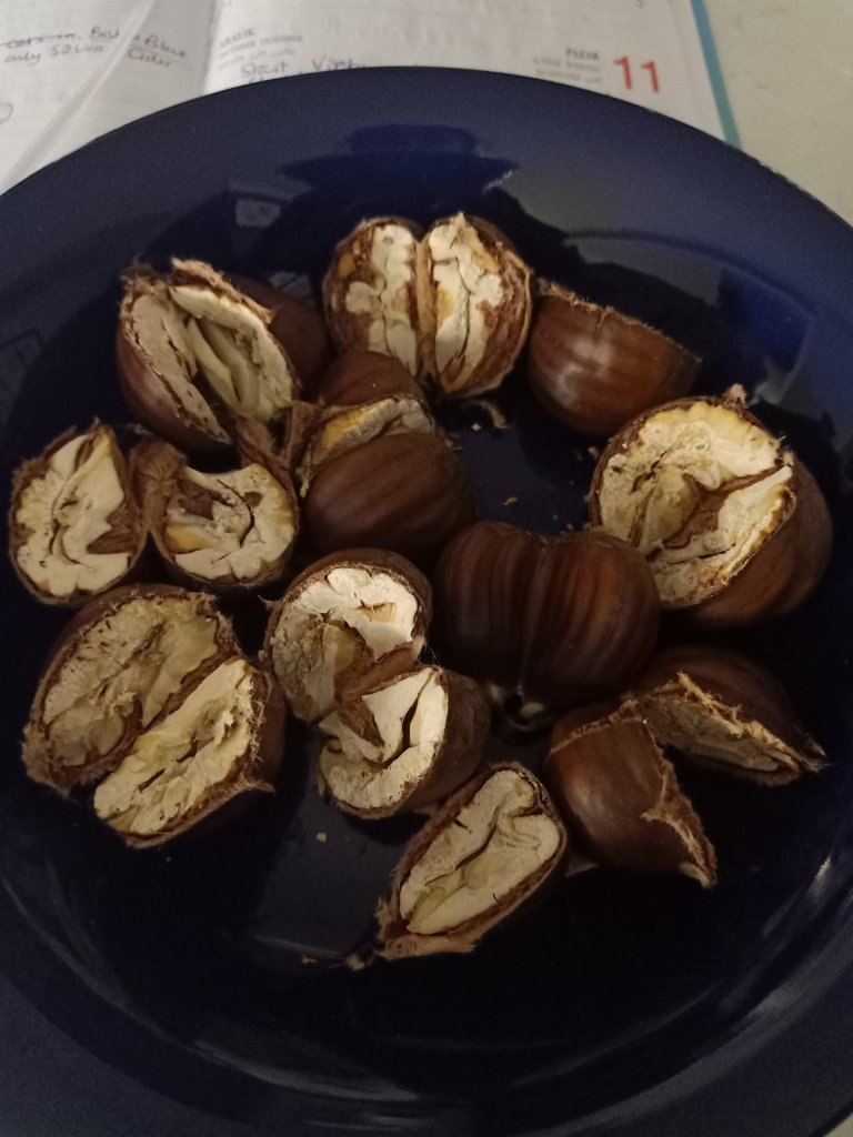 When I got home I had a nice message from Vanessa asking when I’d be able to meet up as I’d not seen her since Tuesday and I said I’d try for tomorrow. I made chicken fried rice for dinner and had dog snuggles. All 3 dogs were asleep by 9pm but I stayed awake watching TV. At 11pm I remembered I had chestnuts and had some of those.