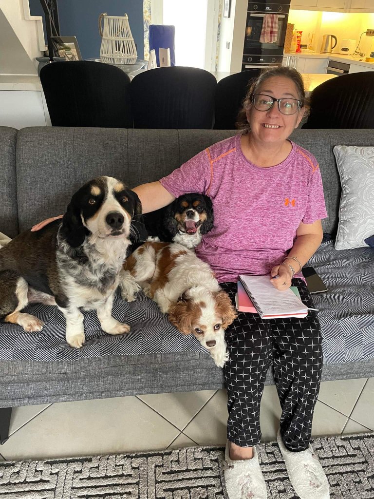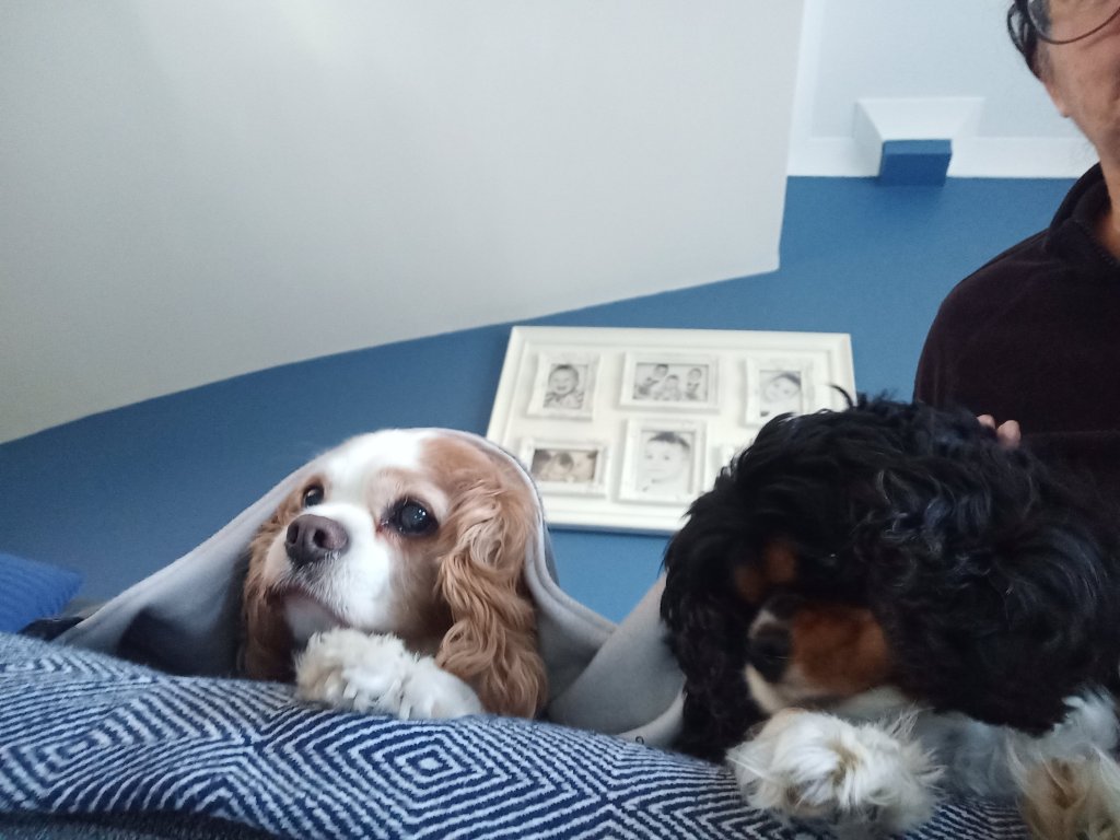 I had to do some editing again on Sunday 15th January so the dogs were quite happy to relax with each other after their morning walk. I’d been upstairs for a couple of minutes but when I came back Norman was checking my diary to see if he was featured in this blog that he’d heard mentioned. I found a pizza stone in the cupboard so I made diet pizza for lunch and had some strawberries to snack on. On our afternoon walk Milo, who was still camping out at Manuela apartments, joined us and then another stray dog came along. I had 5 dogs on the walk at one point and got myself a bit of a sweat and a thirst up. So much so that when Charlie, Norman and Edna decided they wanted to pop in to Waterfall to see Skippy, I didn’t object. I was thirsty so I had a beer but I really did need to get back on the diet again. Back at Jamie’s, I had chicken fried rice for dinner and then the cutest thing happened; Charlie and Edna were holding hands (touching paws) while they slept on the sofa.