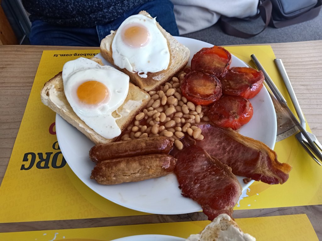 Jamie arrived at 10.30am and after a doggy reunion we decided to go to Ela’s Kitchen for a breakfast. We both had the big one, me without tomatoes and eggs, Jamie without mushrooms, and it was delightful. Jamie surprised me by buying my breakfast as a belated birthday treat which was very good of him. Our next mission was for me to move back to Helen and Abi’s as I had quite a lot of stuff, including all the freezer stuff, to shift. Jamie drove me round and helped me carry everything too – it would have took me about 10 journeys on foot, easily.