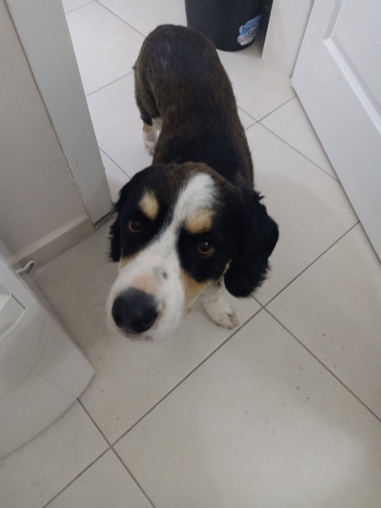Charlie also had seen me put some hot dog sausages in the fridge and had started trying to do paw so that he could have some. He was so funny and would only give his right paw!