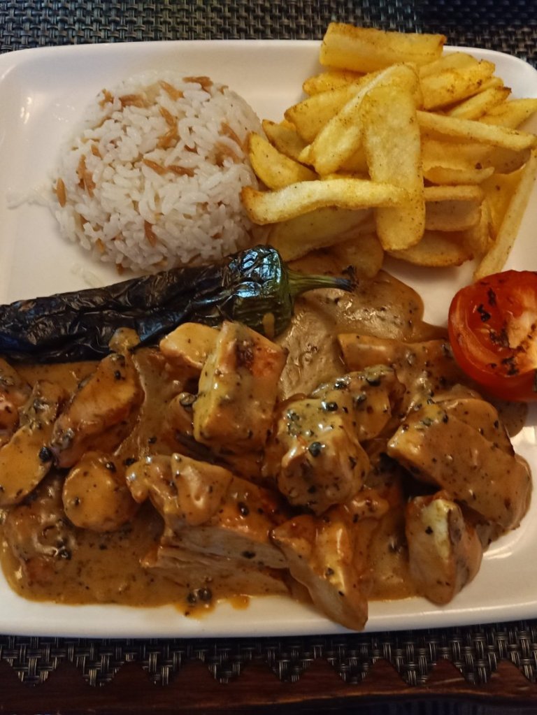 I’d originally planned to go to Fethiye for the day with Jamie, Ann and Nanny Kay where, instead of drinking too much, we would go bowling to celebrate my birthday. In the end we’d decided not to go as I would have had to miss Turkish class and it could be too busy with families at a weekend. We would go for a meal and drinks in Dalyan instead and we decided Hotel Dalyance was a good choice for everyone. I’d not been in ages and I love the food there. We also had the added surprise that Jamie’s partner, Drew, had decided to come to Dalyan and had just arrived. The 5 of us had a lovely table and by 6.20pm I had a beer and a red wine on the go while tucking in to the complimentary bread and olives. Nanny Kay bought me a bottle of red wine with some Smarties and a chocolate bar attached which was very generous of her, especially as I thought that she already gave me a bottle of wine for my birthday. That one was just for having her over for dinner, as it turns out, so I wasn’t complaining and it was much appreciated. Sarah came to take our order and she recommended the pepper chicken for me, which sounded good. When it came, I was very impressed and it tasted delicious. I enjoyed my night, the food and wine at Hotel Dalyance with my friends but we were getting the bill before 9pm! It looked like the night was coming to an end quite early on a Friday night, luckily I’d not dressed up for it but everyone I was with looked like they had made a bit more effort. Jamie, Drew, Nanny Kay and I decided we would go for 1 or 2 more at Sofra bar. Ann said her goodbyes and went back home as she didn’t fancy going on for another drink as she was closer to home at Hotel Dalyance.