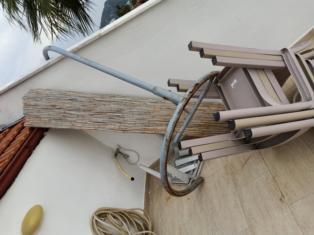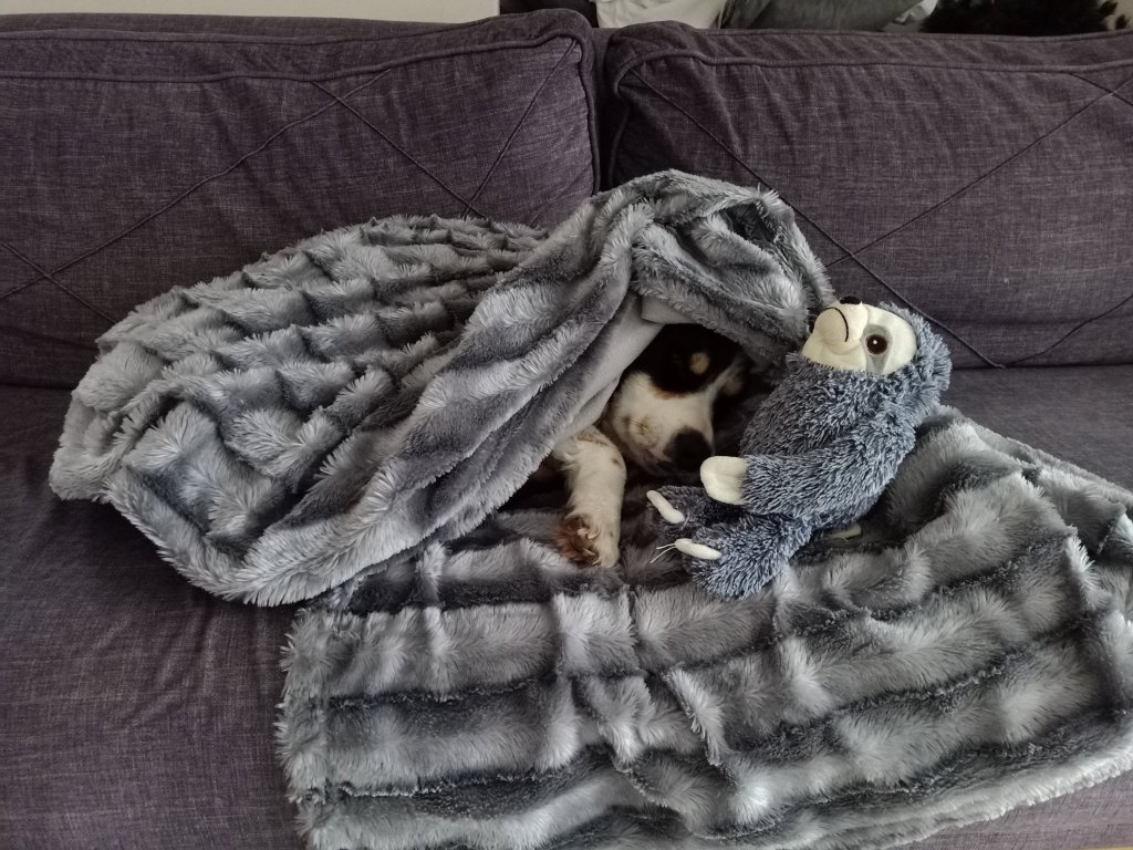 I felt absolutely shattered on Friday 27th January, after only a few hours sleep. Charlie was in Abi’s bed with me and he’d been scared of the wind during the night. At 8.30am I went to survey the outside balconies and found the furniture had blown everywhere. A screen fence had fell off the roof and I could see that on the ground there was some damage to the front of the complex fence. There was a slight gap in the rain storms so I got my casual clothes and a big coat on to go for a jog with Charlie. We had to be quick as the rain was threatening the whole time we were out and the wind was still blustery. We’d just got in when the torrential rain came and Charlie was scared. I snuggled him up in his favourite blanket and made sure he had Slothy, his best toy, with him while I went out for just over an hour to Turkish class. When I got back, I’d got a bit wet in the rain so went to have a shower. Charlie was still worried about the storm so he came in the bathroom too.