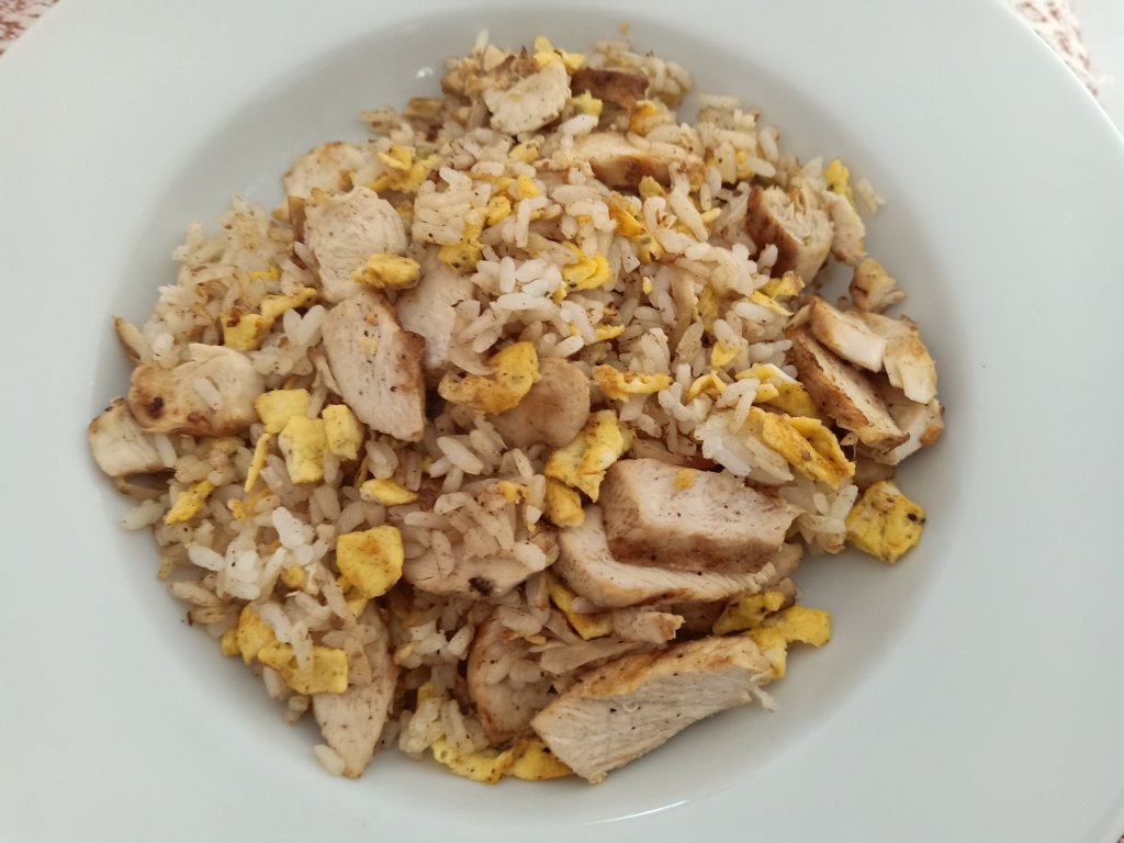 Mark and Kate were having a curry night at their’s later and Kate had invited me. I said I’d bring a Saag Aloo dish with me too. I hurried along to Fat Club, eager to find out my results. Remarkably, I had lost 0.9kg (almost 2lb) and had now exceeded a total loss of 3.6kg (7.9lb, over half a stone) which was a great start to the month. Spurred on by a good result, I decided not to have a cup of tea which is served with a biscuit and decided to order a large bottle of water. Back at home I set about making my dish for tonight and wolfed down a late lunch of chicken, sweetcorn and egg fried rice using the left over chicken shish from Kordon’s on my birthday, which I’d got out of the freezer earlier.