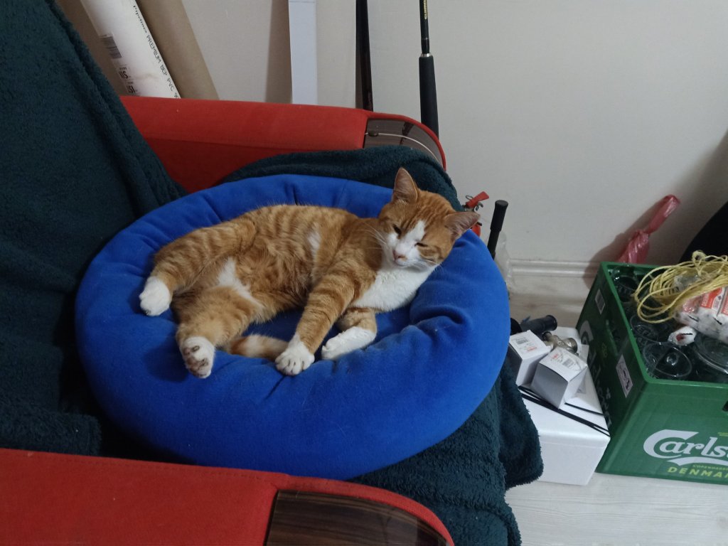 When I arrived, there was just Kate at home so I wasn’t actually late. Mark and the other guests were all still at Rehab bar after pool had finished. Kate had made a delightful meal of onion bhajis, chicken curry, rice, nan breads, and various salad, chutneys and dips. It was lovely and I really enjoyed it with my bottle of Tılsım red wine I’d allowed myself, using my syns. It was good to see that Mark and Kate now had a cat room where they all had an individual bed and a litter tray, this would make it so much easier to look after them in the winter.
