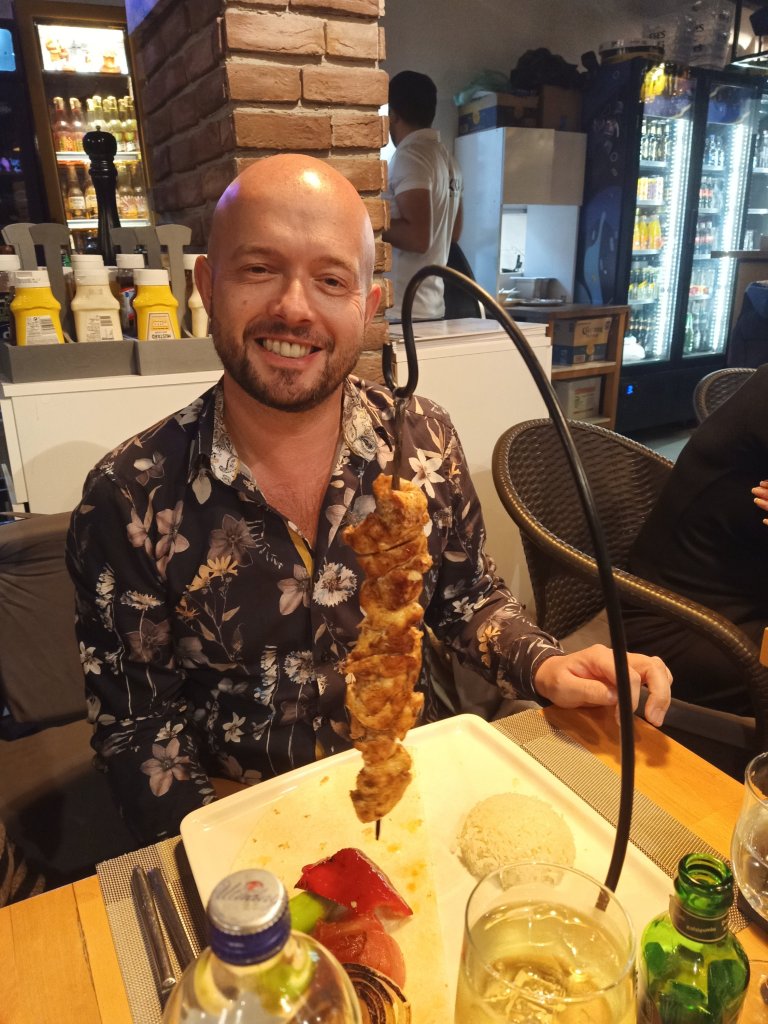 Sheila gave us great instructions and also a couple of samples to try out. I was tiddly by the time we stepped back outside of Shiela’s gorgeous villa. There were some goats which were friendly so I took some photos before Kate and I cycled off to meet Mark at Tez bar. Once there, we joined Debbie (Darling), Roy, Ali, Kev, John & Andrea and had a good old laugh. I allowed myself 1 glass of red wine which is 80 lira (£3.50), and couldn’t resist the crisps which Debbie (Darling) had popped on the table. When the strawberry man came round, loads of us bought some. As Kate and I already had some at home, we shared a punnet for 25 lira (£1.09) each.