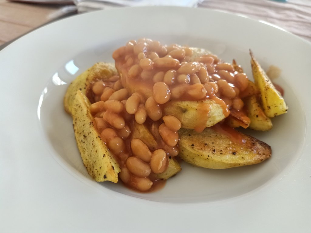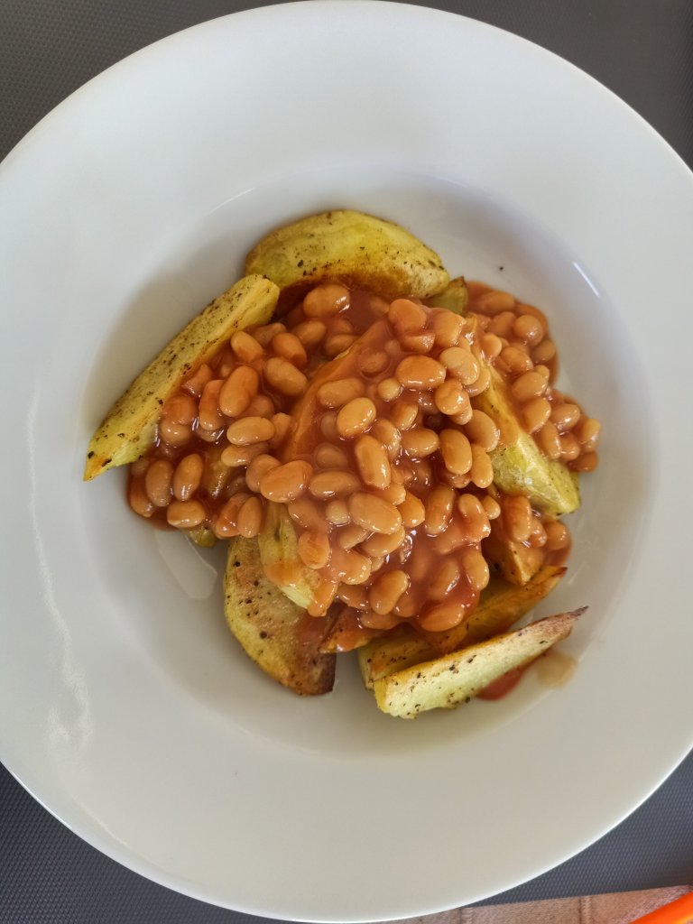 For lunch I had one of my favourite treats; Slimming World style potato wedges with a third of a tin of Heinz baked beans. I had only just discovered that baked beans were allowed on Slimming World and that made me very happy. They are quite pricey so I tend to just use a third of a tin as a portion and add a drop of milk to make them a bit more runny.