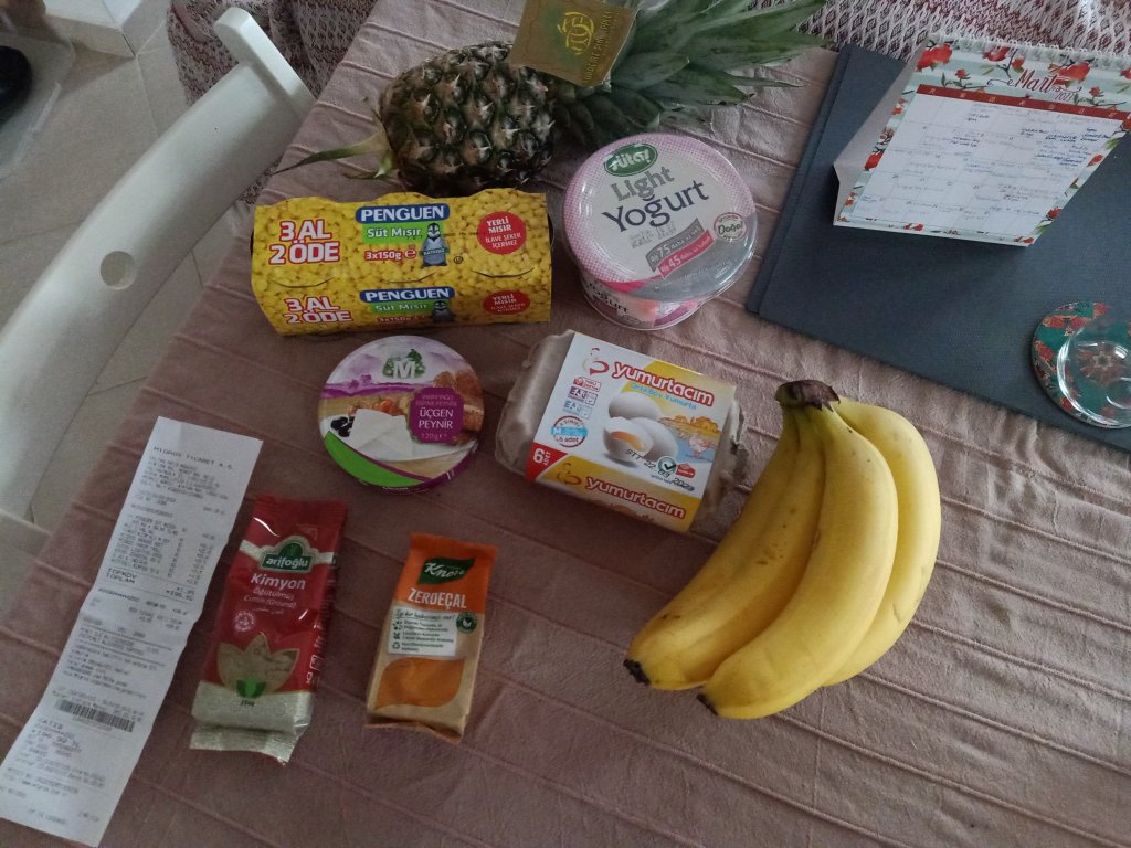 Before dinner I went to the shops to buy some food and here’s the items I bought, with prices in lira;