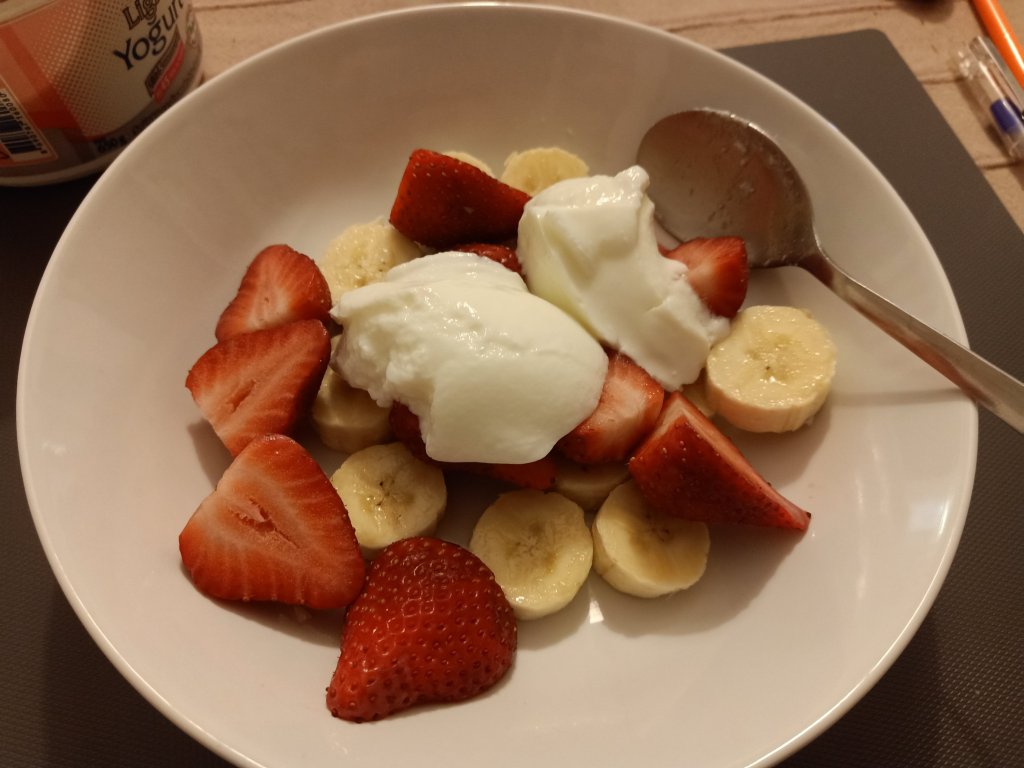 Back indoors, it does get nippy once the sun goes in, I had a cheese sandwich for dinner and some strawberries.