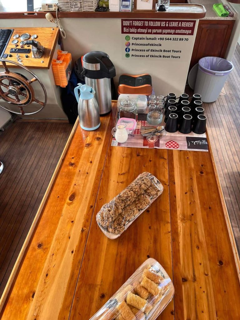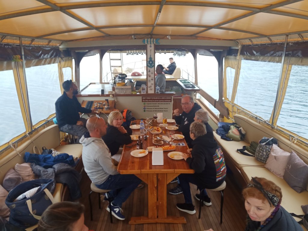 The Princess of Ekincik boat was leaving from outside River Terrace at 10am, it was costing £30 each (drinks extra) but included food for the day.