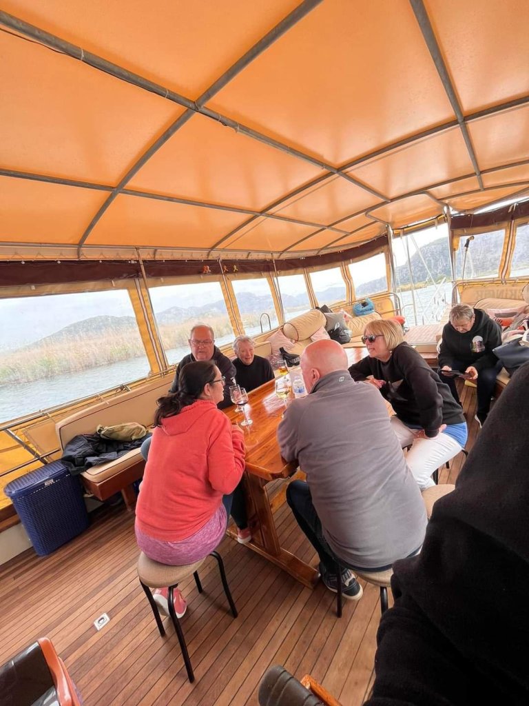 After lunch we sailed up the river to the mud baths where Greg was the only one brave enough to sport his swimmers and get in the dome. Every one of the guests was lovely and it was so nice to just have a laugh with old and new friends. The boat is one of my favourites and I find the owners really respectful and humble too, which is nice. On the way back a few of us had another drink and we had a bit of music for ambience while İsmail served up an array of afternoon treats. There was some delicious homemade cake from Ivona and lots of fresh fruit. I stuck to my 3 red wines and was pleased with that. We all said our goodbyes after a lovely day and I walked back with the Aussies, where they invited me in for a gin and bitter lemon. We’d all had a great day on a lovely boat trip and, as none of us are sun worshipping types, it didn’t matter that it had not really been the best weather. Amanda and Greg had decided to stay a bit longer in Dalyan and would be here until Wednesday. After that, they would head up the West coast towards Bursa, then İstanbul.
