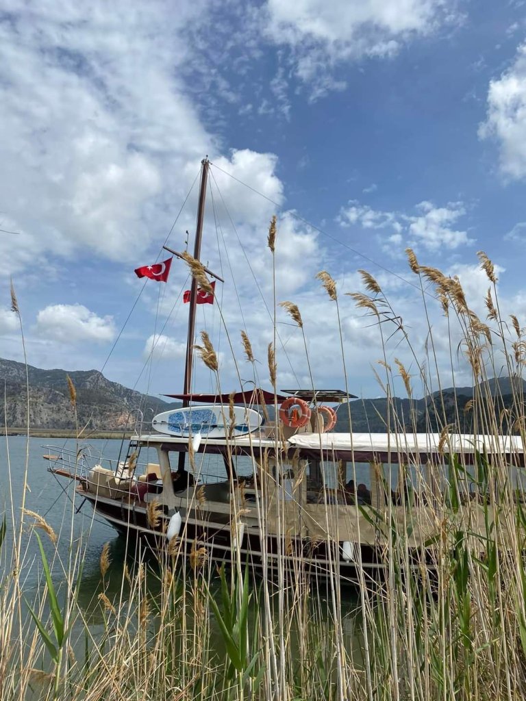 Ivona, the Captain’s wife, was sick and couldn’t make it. The weather was dull and quite cold but we weren’t going to let that put us off. Captain İsmail had decided we would go to Little Dalyan, a sheltered spot behind Iztuzu beach, then the lake at Köyceğiz instead of the sea due to the threat of storms and choppy seas.