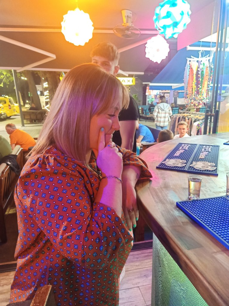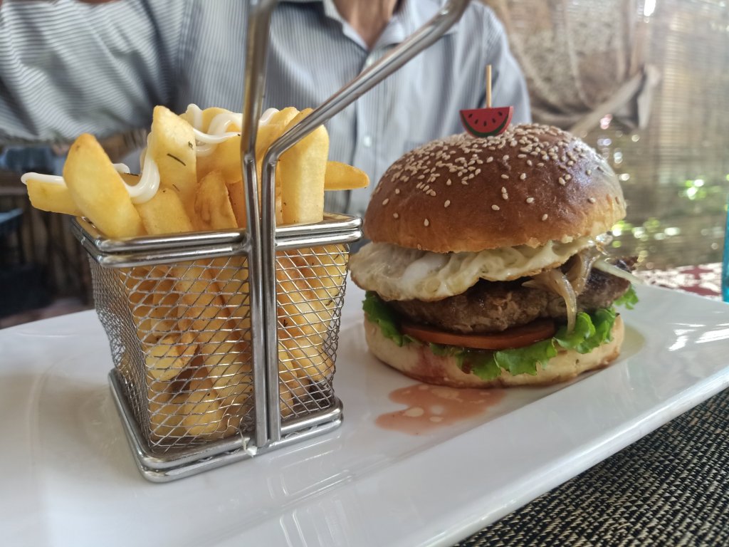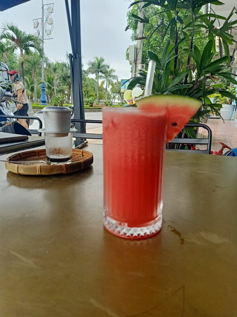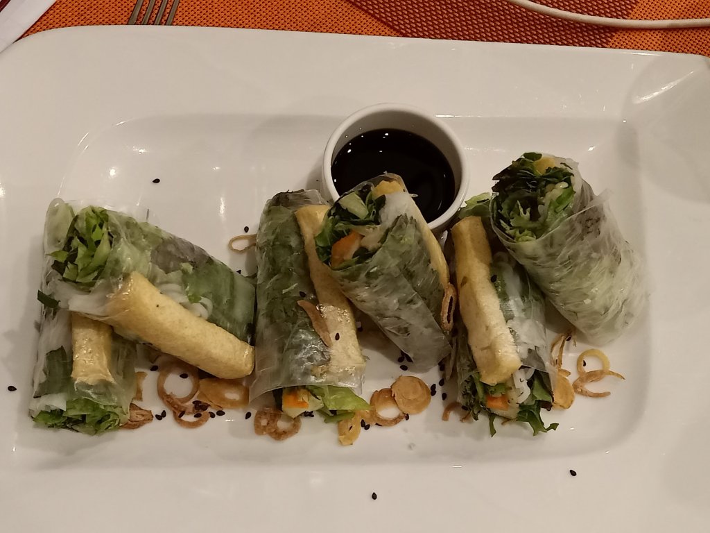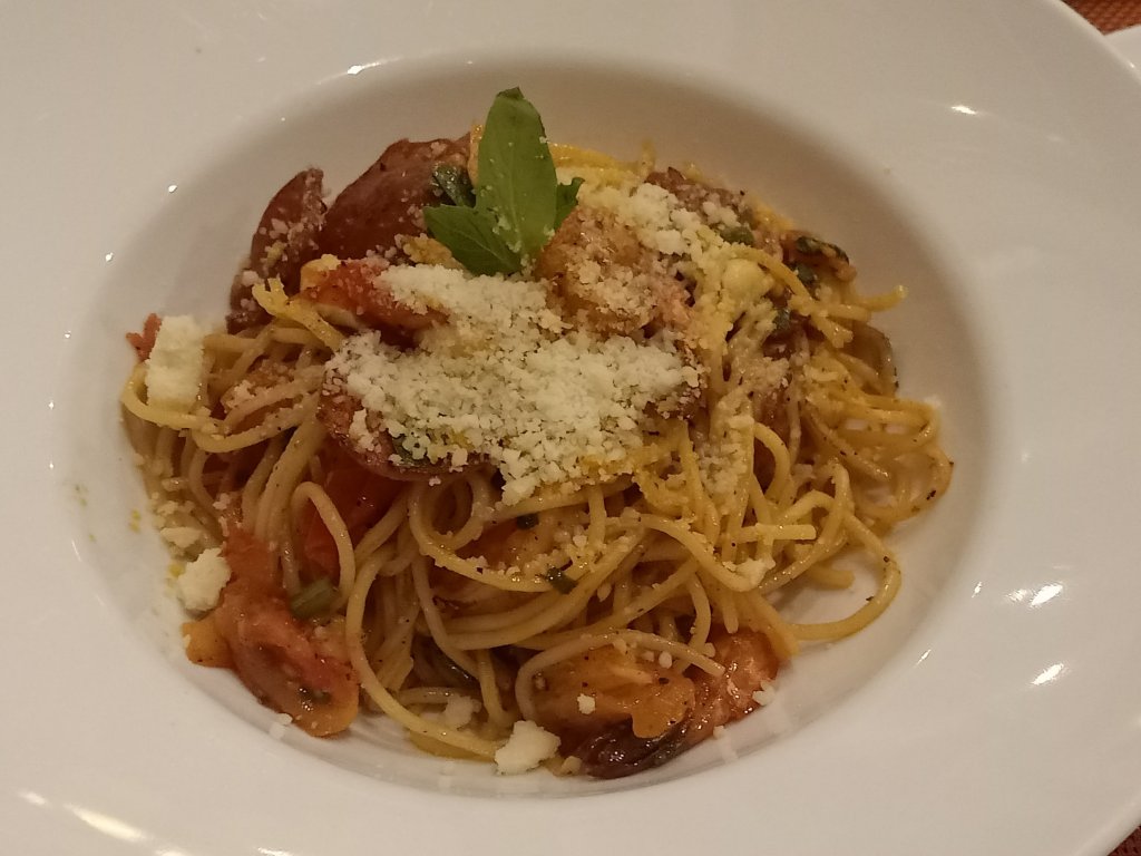 I decided I would work from Victory Road Villas (VRV) in the afternoon/evening when it was ‘cool enough’ to cycle there. Tatas had also suggested that we go for a curry tonight at Ganesh, the fairly new Indian restaurant, so I planned to finish by 8pm. For a late lunch, I ordered fried veggie spring rolls, a mango lassie and some peanuts. I drank water and the staff put the AC on straight away today, which was nice. I had a Bang soda, which is just soda water in a glass bottle, as I finished my work for the day. Tatas wasn’t able to come to meet me as she had work commitments so I stayed at The Villa’s restaurant and decided to treat myself to a glass of white wine and some pasta. The food was good and it didn’t taste spicy but then I found a chilli in the bottom. I did complain because I’m allergic to chillies and it transpired that, although the waitress had told the kitchen, the chef had forgotten.