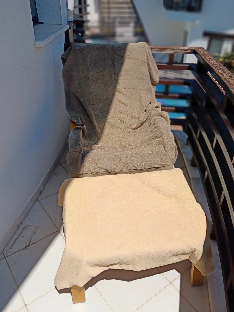 For lunch I had some curry and steamed rice then lounged on the new furniture in the sun while eating an orange.