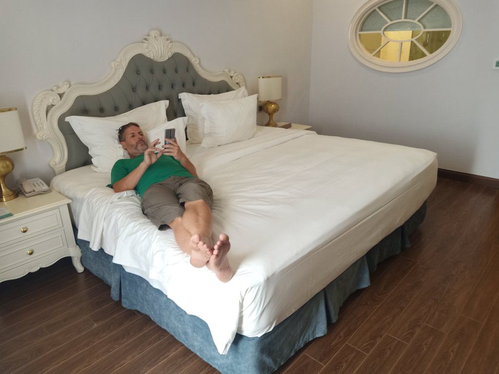 It was Stu’s 50th birthday celebrations in Dong Hoi tonight so we had decided to make a trip of it and stay at the Vin Pearl hotel, another of my favourites. We got the Oxalis staff bus and were dropped off near the town centre where we then had to get a Grab taxi to the hotel. It had changed to now be a Melia hotel and they had made a few changes.