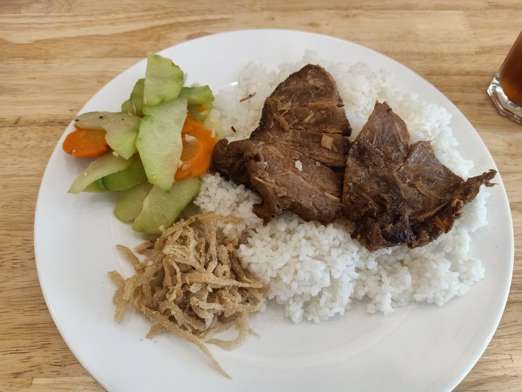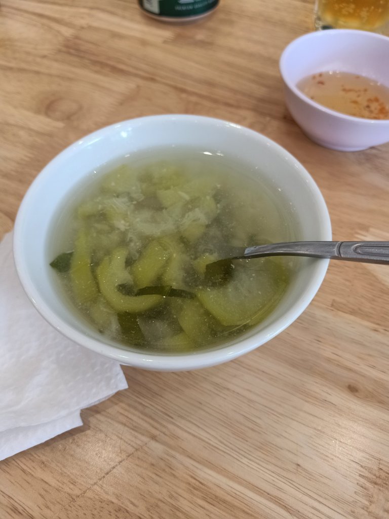 Captain Caveman and I both chose the pork place but it turns out we had different places in our heads. We ended up at the one Captain Caveman and Stu recommended where we ordered 2 pork dishes a lemon juice and a beer for a total of 131,000vnd (£4.32). We also got a free winter melon soup included so that was a bargain but I wasn’t a fan of the soup. My pork, rice and salad was very good though and I’d eat there again if it wasn’t for the 4 staff all being on their phones on full volume, one playing games!