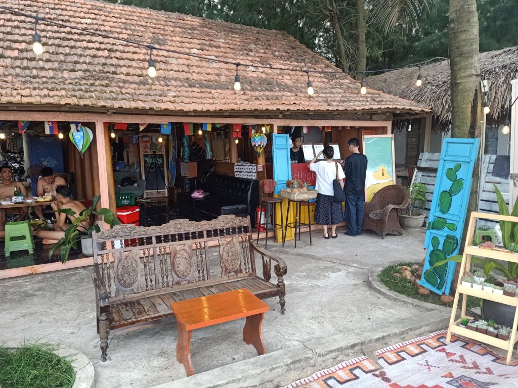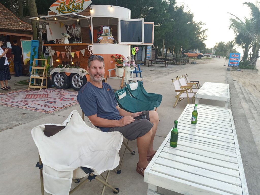 Stu had told us to be at the Ra Khoi bar on the beach at 5.30pm. We arrived late on account of me eating cake in the hotel but we were the first to arrive. There were some shirtless locals in the bar but they were nothing to do with Stu. We got a beer each and sat overlooking the beach until Stu, Max and Jack arrived. When they did, I was clearly overdressed and, not long after, I found I was the only female attendee. It was going to be one of those parties, as the rest of the motley crew of guests arrived and headed on to the beach. Captain Caveman and I agreed a password for emergency evacuation, just in case. We decided the first 2 items on the shopping list, used in tandem, would be the signal for us to leave if it got too lively for us!
