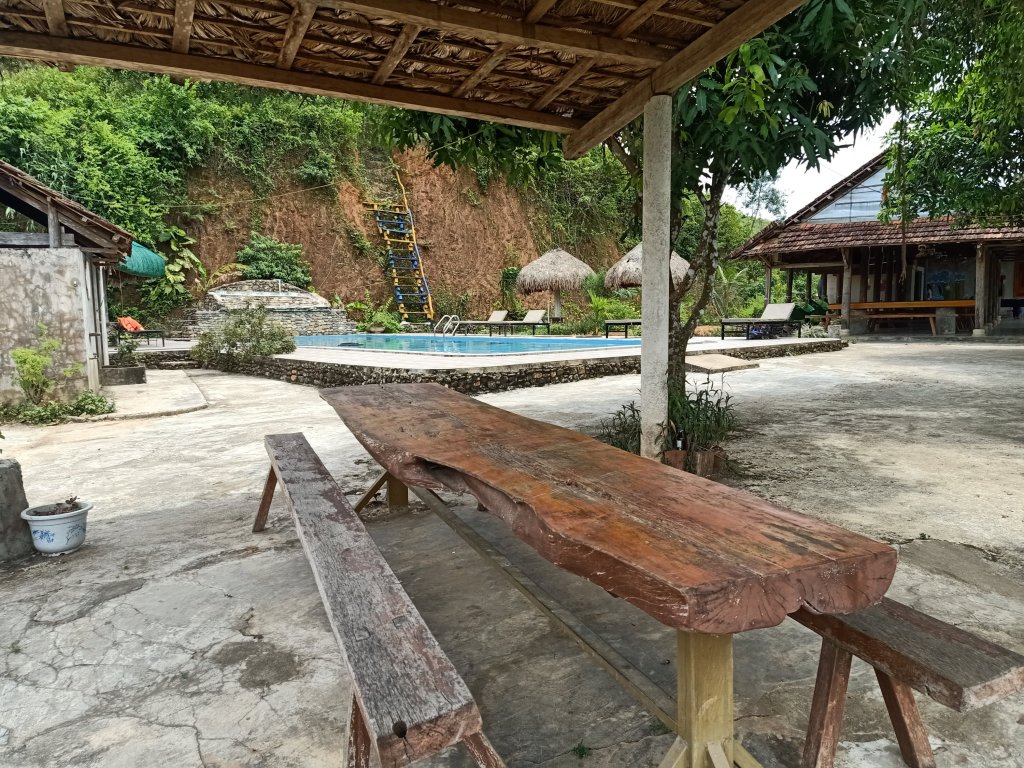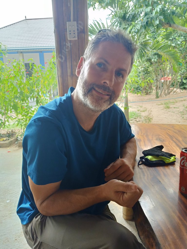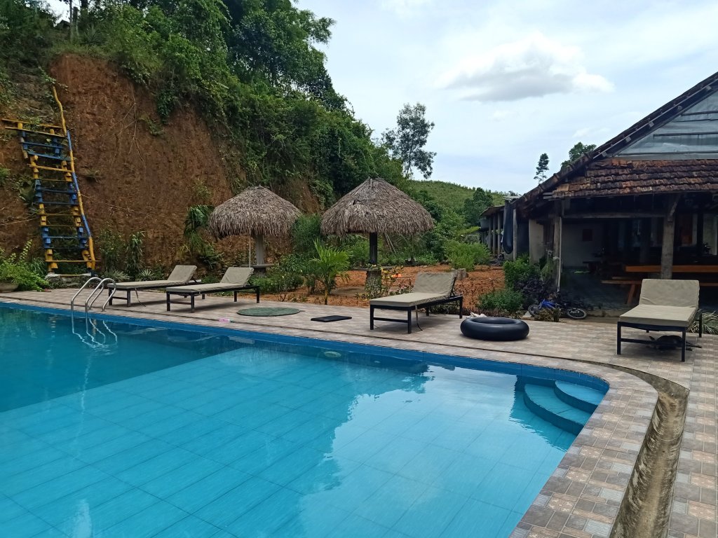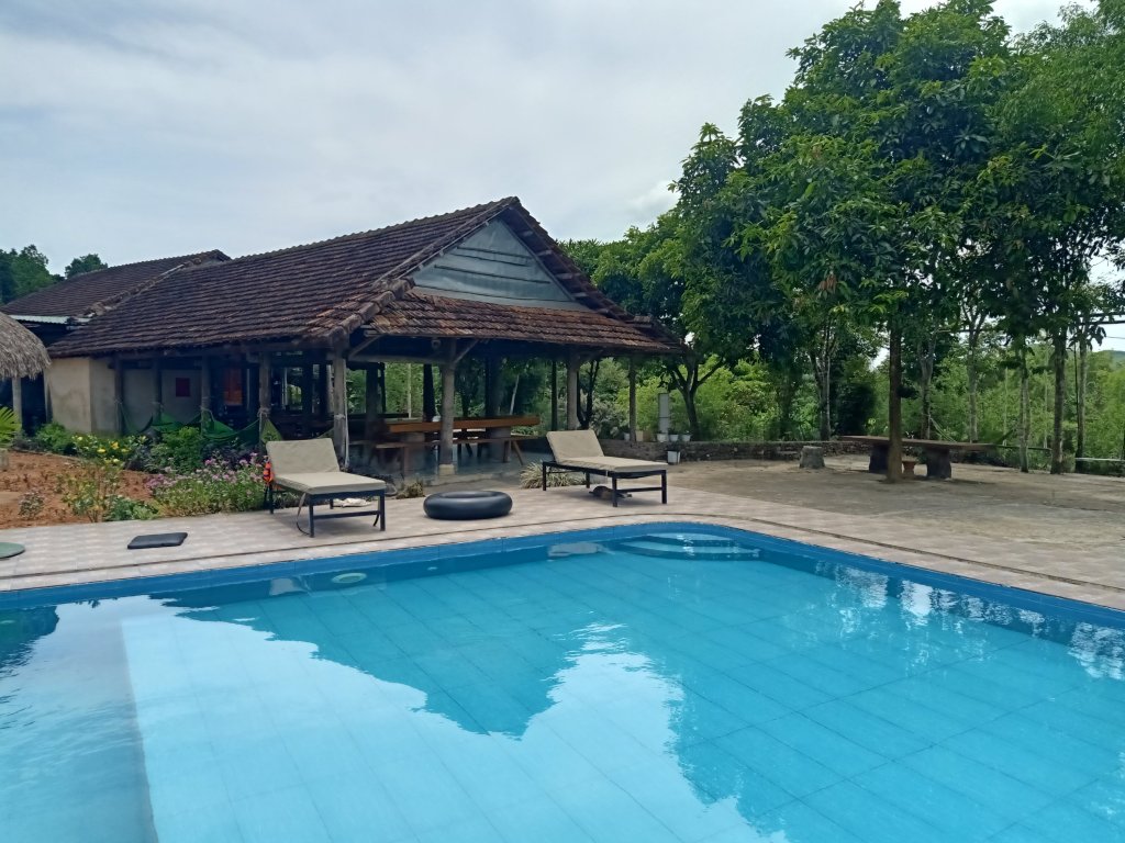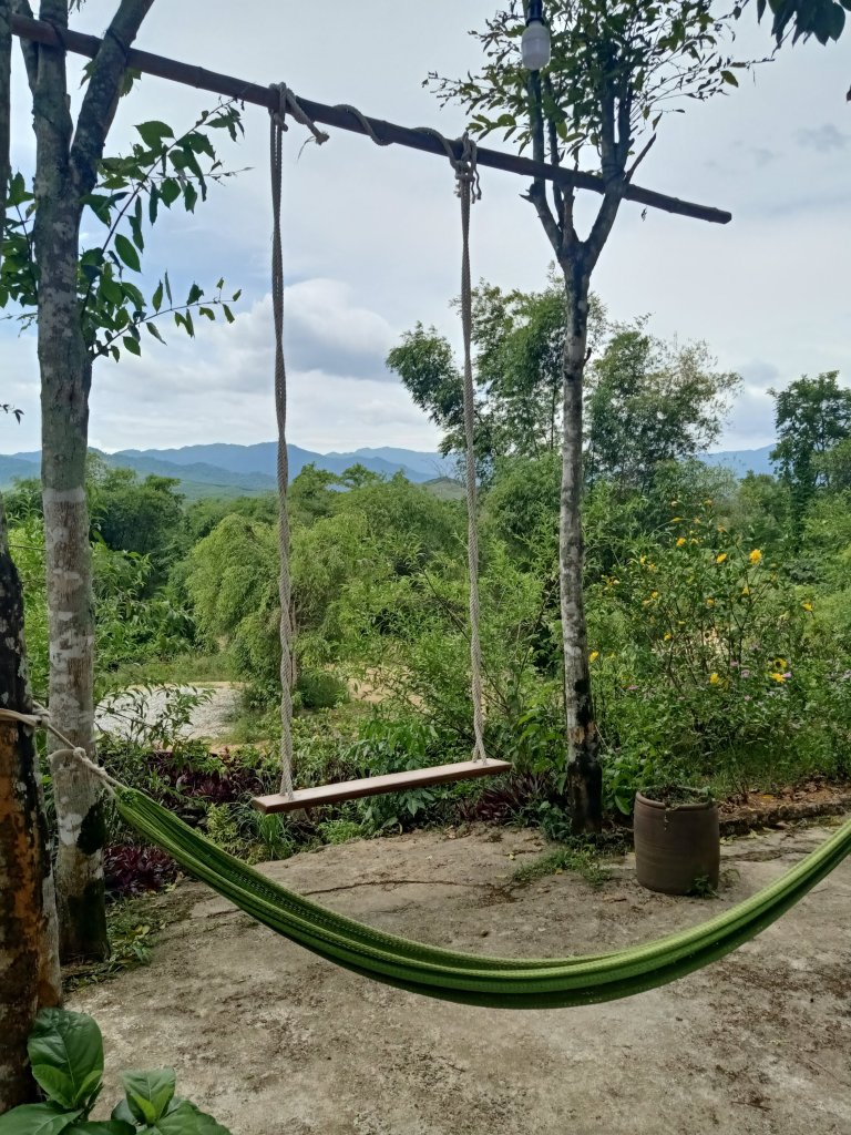 We cycled back through the valley and some of it was shaded which I was grateful for, some of it was steep and I had to push Bluey uphill. We soon ran out of water and I knew I wouldn’t make it back to Phong Nha in one go so Captain Caveman pushed Bluey for a bit and suggested a slight detour. Half an hour later, we were sat in Multi and Diem’s kitchen at the Pepper House being offered rice wine. I declined and had loads of much needed water while Captain Caveman had rice wine and beer (he’s an animal)! There were kids’ swimming lessons going on in the pool and I’m sure they were laughing at my red sweaty face.