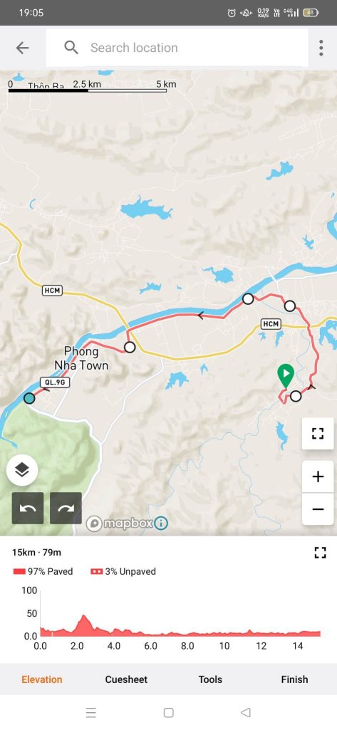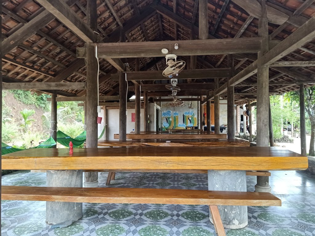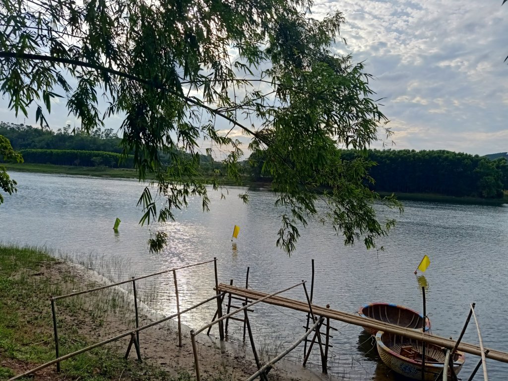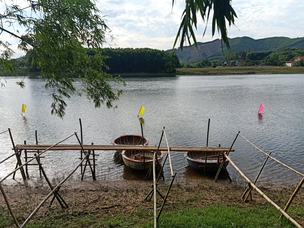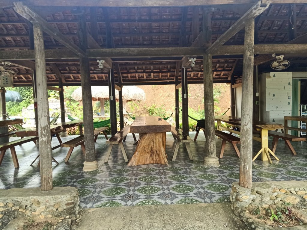 Phong Nha Funky Beach is a new venture owned by our friend, Mo (ex Oxalis colleague) and the previous owner of Greenfield Homestay. We arrived and sat overlooking the river on one of the platform style seating areas. It wasn’t particularly comfy for my achy legs but Mo was pleased to see us and was with another colleague of Captain Caveman’s, Nu, so they joined us. We had a cold beer, Mo brought us some vegan spring rolls and Nu gave us some vegan Banh Ep. Both were lovely but I was a bit distracted as it was already gone 5pm, it goes dark around 6pm and I hadn’t brought any lights. We said our goodbyes after a brief overview of the various activities that can be done there and set back off.