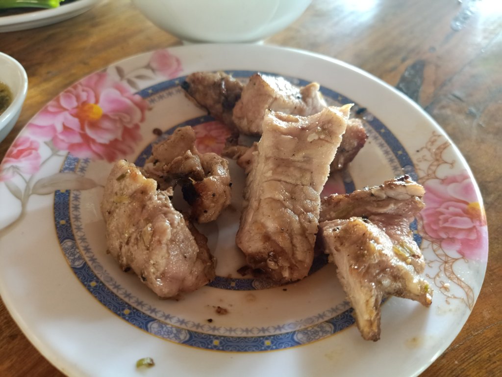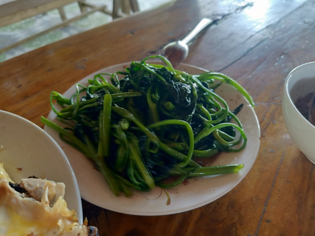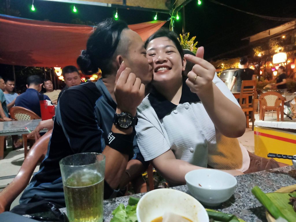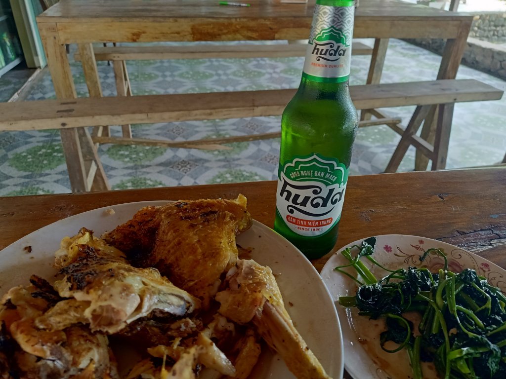 I arrived at the Pub with Cold Beer in blazing sun, another drippy mess, any sun cream I’d had on had definitely sweated off. Nhat and her daughters were so pleased to see us, they got Captain Caveman a cold beer and me a water straight away. We decided to order chicken, pork, rice and morning glory because we hoped our friends, Chung and Uy, would join us. While Nhat killed a chicken and I rested in a hammock, Captain Caveman cycled up to the Wild Boar Farm to see Cuong. I couldn’t manage any more and was regretting cycling 13km away from home, not knowing if I’d be able to make it back.
