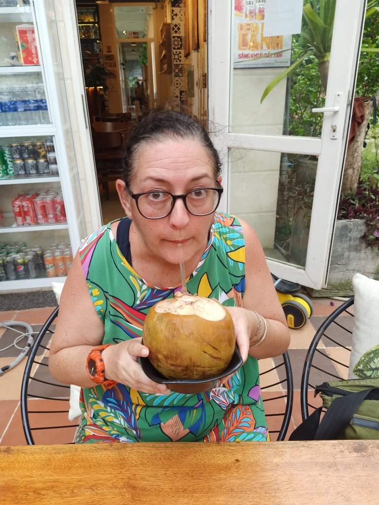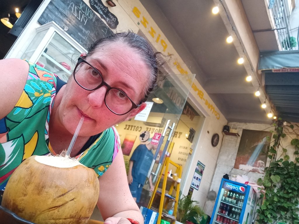 We were due to meet Chung and Uy at 7pm but I was a sweaty mess and needed to go home for a shower. I’d drank all of the water we had between us so we had to stop for a coconut at Tree House Cafe on the way back home. I had a shower, then a naked lay on the bed in AC before rushing to get ready to go back out for dinner.