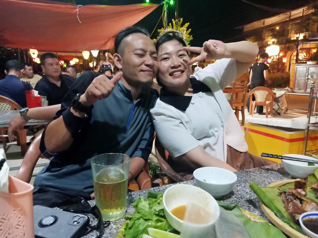 Captain Caveman and I met Chung at the Bia Hoi BBQ duck place, next door to Victory Road Villas. Uy was still on his was so we ordered the Bia Hoi beer which was about 60,000vnd (£1.98) for a small keg. Chung ordered food without Uy as it got to 8pm and he still wasn’t there yet but he arrived, a bit merry! It certainly was one of the more unusual anniversary celebrations I’d been on and turned out not to be much better than our own last year!