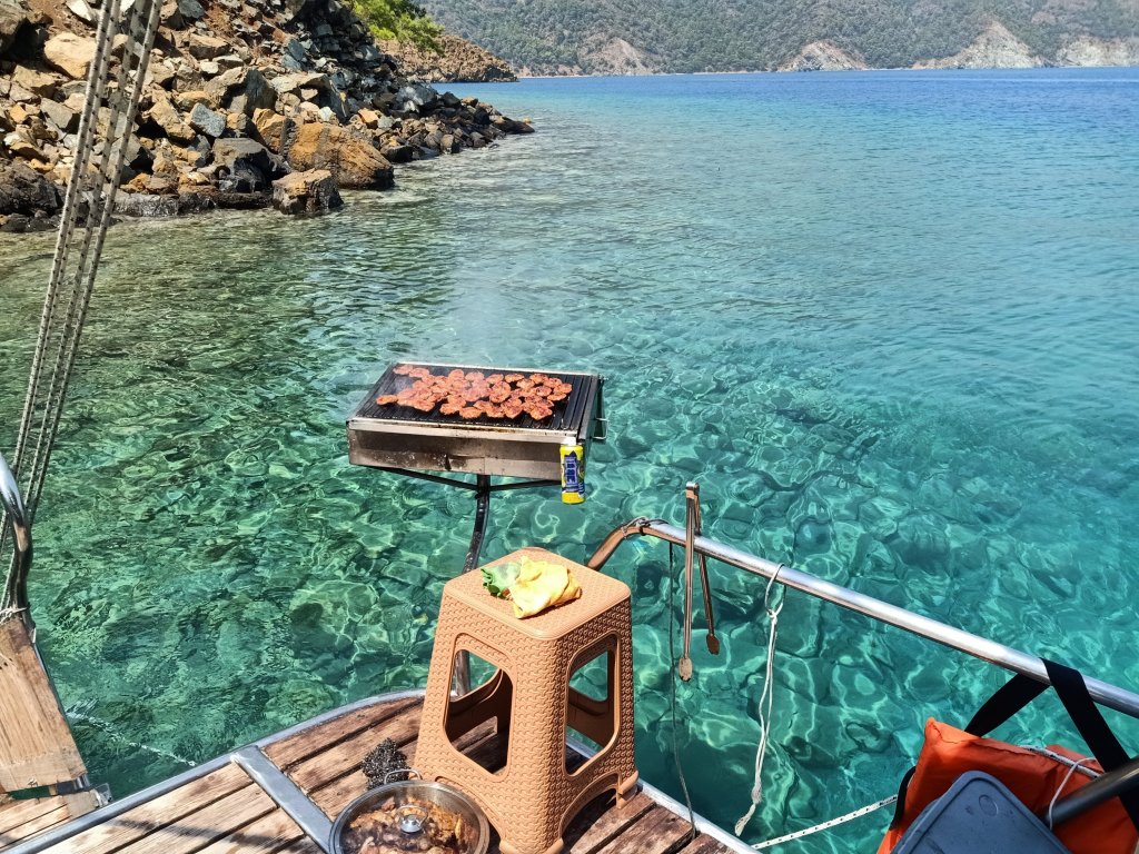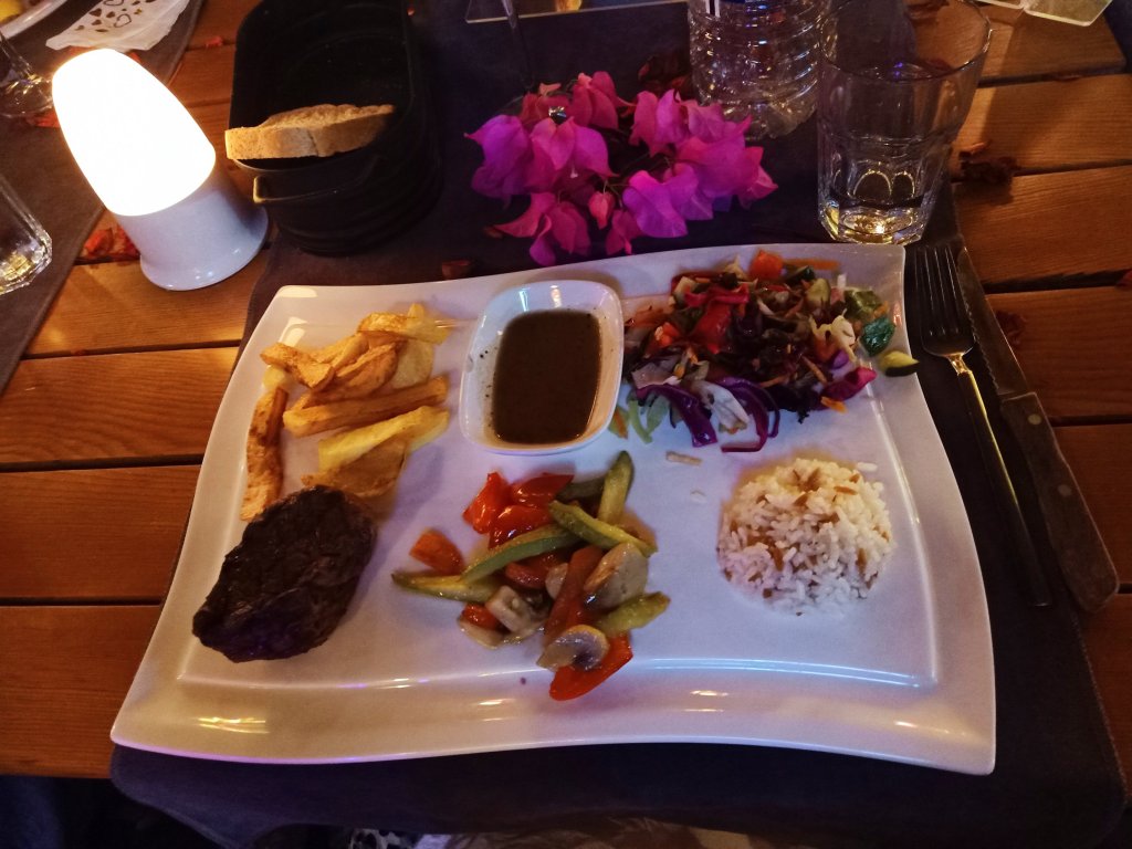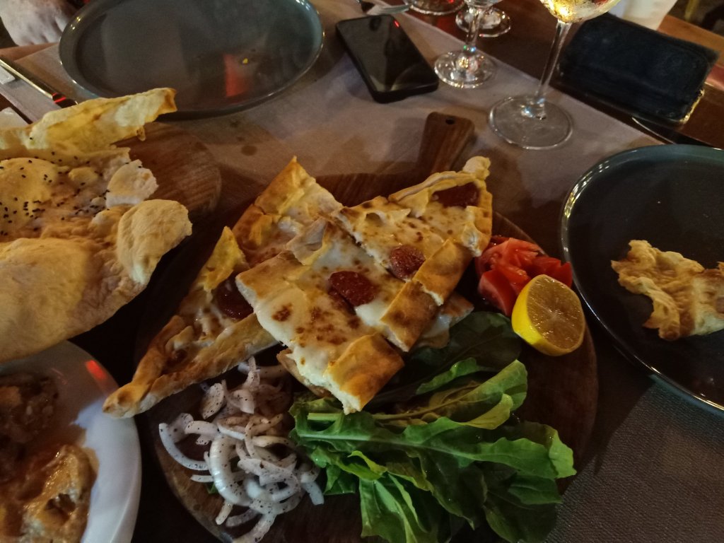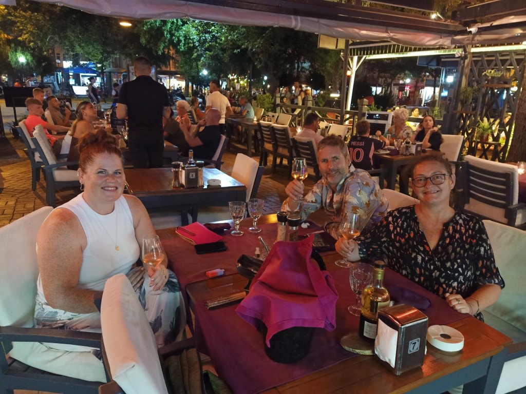 While uncertainty for whether Clare’s flight, already delayed by a couple of hours, would take off still, Kelly checked the news and called home. Regular updates came from Clare at Dalaman airport but it looked like even the staff didn’t really know when flights would continue to fly. My mate, Josh, was stuck at a UK airport trying to get to Italy. All we knew about Kelly’s flight was that she should still go to the airport to check in, as normal, even if there was going to be long delays so that was the plan. We went back to BC Spa finished off some wine and then got ready for our last meal together.