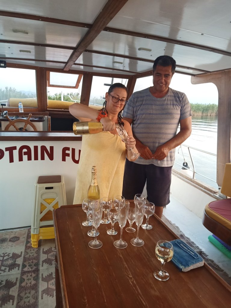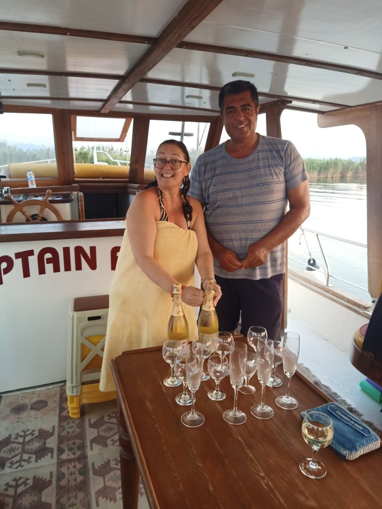 It was Maddie and Sam’s engagement celebration on a Princess of Ekincik boat trip on Monday 28th August. Unfortunately, Captain Caveman had to go without me as I had plans with Kelly and Clare. Kelly was leaving after midnight tonight but Clare was off around midday. It had not been a long enough trip and I was going to miss them a lot. I’d loved having them both here in Dalyan and it had really made my week! We all had more last day BC Spa treatments booked in. While the girls had their last full on pamper, I had a much needed pedicure. It was £10 which I didn’t think was bad and the therapist did a good job. I was trying my best not to sob when Clare left, especially as we hoped to meet up when I came back to England and maybe get a cheeky Rhodes holiday in for 2024.