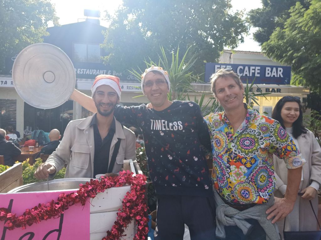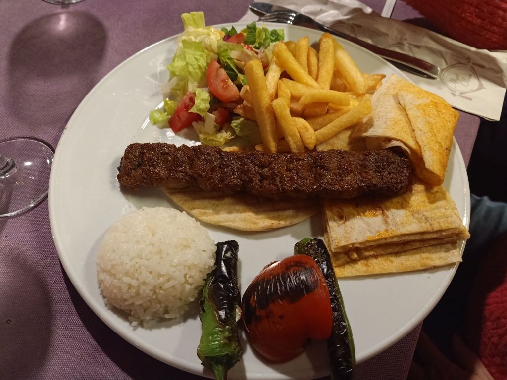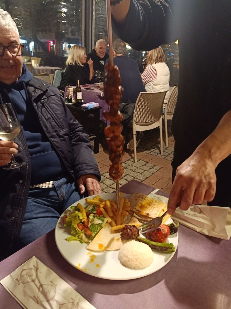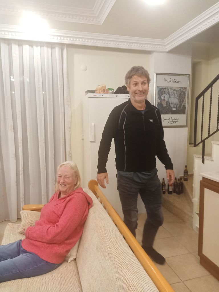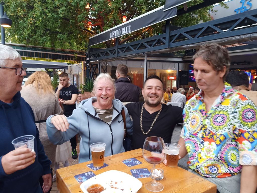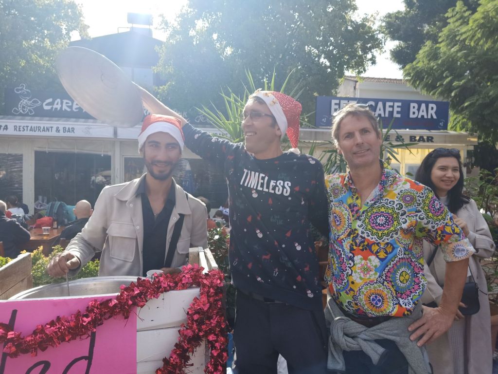 My hair price had gone up to 1,000 lira (£27), he’d dyed it, cut it, added a few layers, blow dried then curled it and I was pleased with the colour too. The cost was still very reasonable if you compared it to the UK but was probably 5 times the cost of where I get it done in Vietnam. It’s always the rule that after a hair appointment, it’s compulsory to go out so, despite it raining heavily, we were off out. We’d arranged to meet Nanny Kay at Lukka bar but she cancelled due to the weather. Instead, we decided to try Filo which is a relatively new place that I’d not been in yet. We walked past Heybe towards Retro bar and found that Filo was closed. As the 4 of us turned around Michele and Nick drove up with the Christmas hat and gave it to Captain Caveman. We went in Lukka bar where we were the only people, the rain meant most people were staying indoors. We played pool and learned how to do some slower and harder shots. I had only one glass of white wine because I prefer the red but I was finding red wine a bit too harsh on my sore throat.