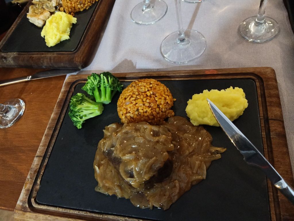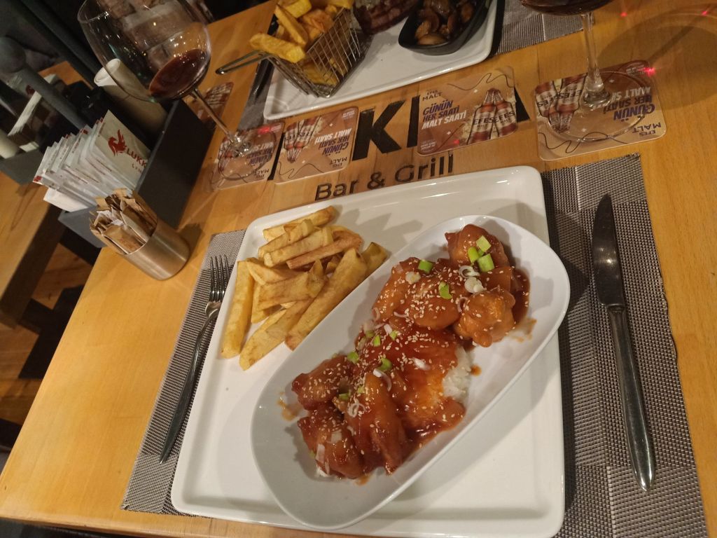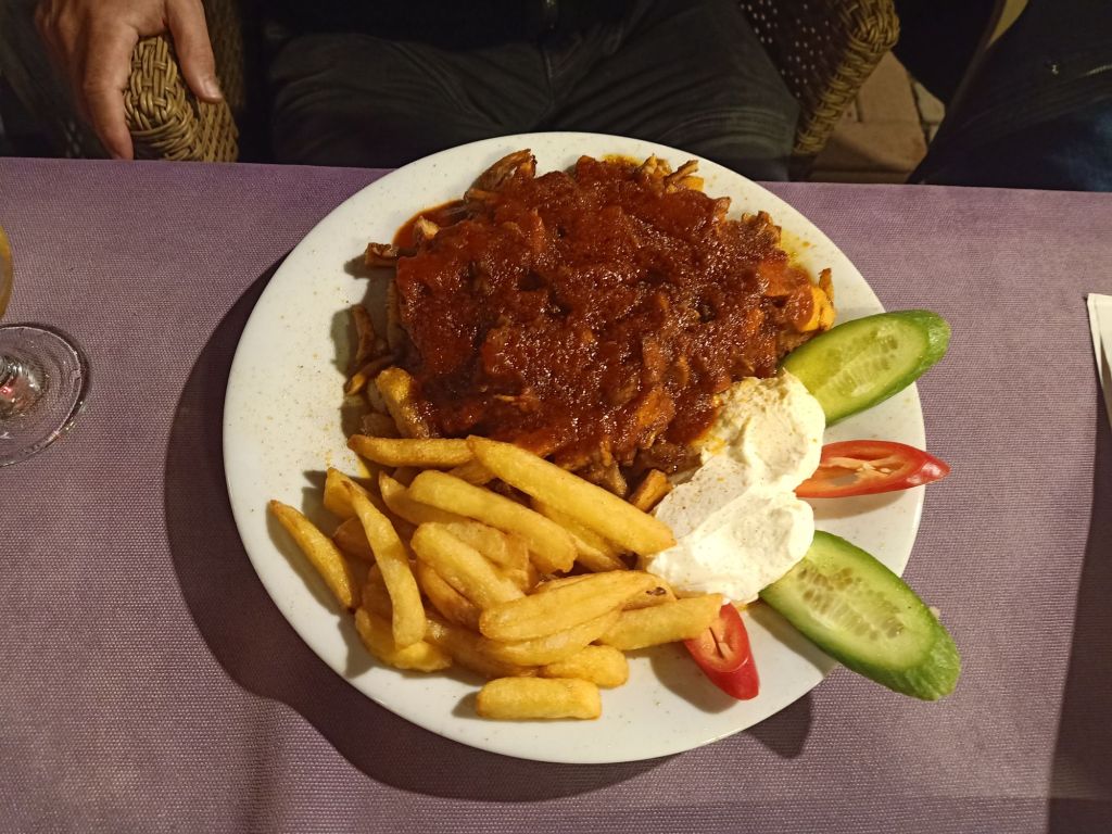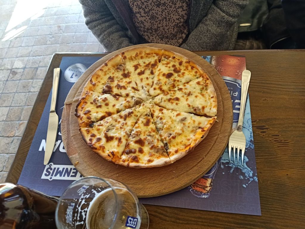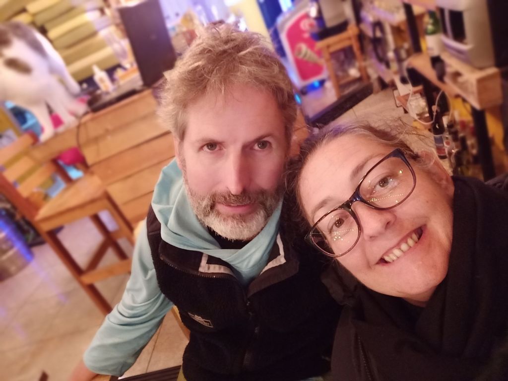 My hair price had gone up to 1,000 lira (£27), he’d dyed it, cut it, added a few layers, blow dried then curled it and I was pleased with the colour too. The cost was still very reasonable if you compared it to the UK but was probably 5 times the cost of where I get it done in Vietnam. It’s always the rule that after a hair appointment, it’s compulsory to go out so, despite it raining heavily, we were off out. We’d arranged to meet Nanny Kay at Lukka bar but she cancelled due to the weather. Instead, we decided to try Filo which is a relatively new place that I’d not been in yet. We walked past Heybe towards Retro bar and found that Filo was closed. As the 4 of us turned around Michele and Nick drove up with the Christmas hat and gave it to Captain Caveman. We went in Lukka bar where we were the only people, the rain meant most people were staying indoors. We played pool and learned how to do some slower and harder shots. I had only one glass of white wine because I prefer the red but I was finding red wine a bit too harsh on my sore throat.