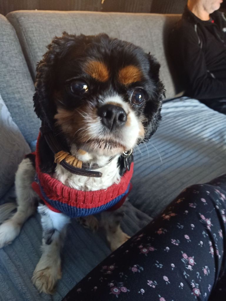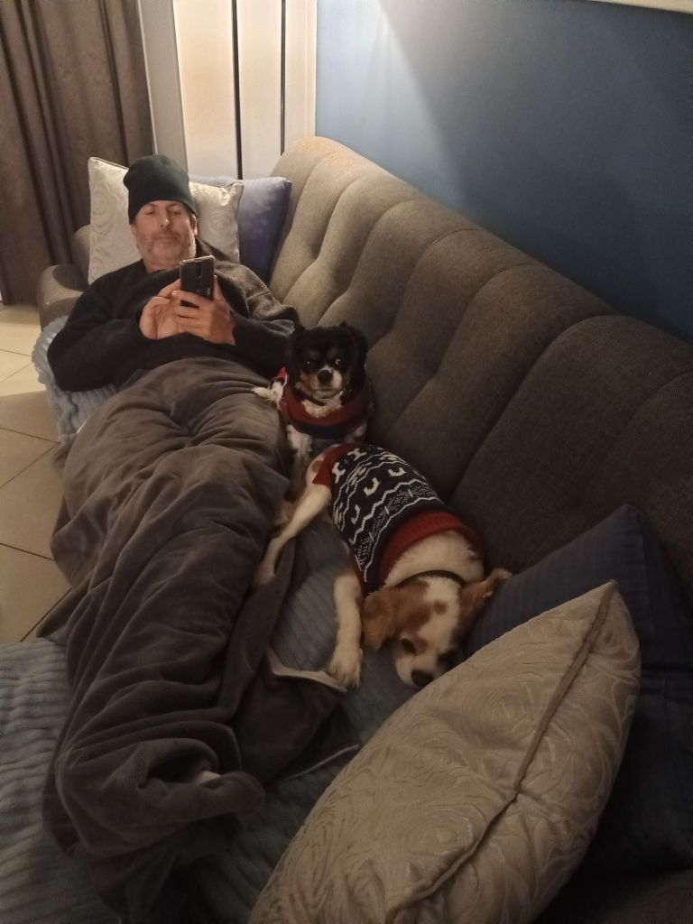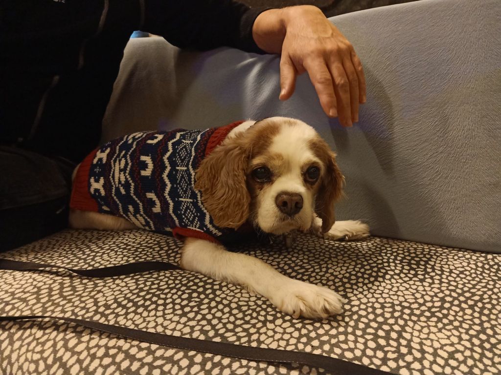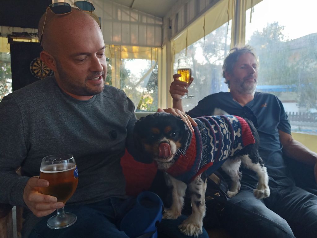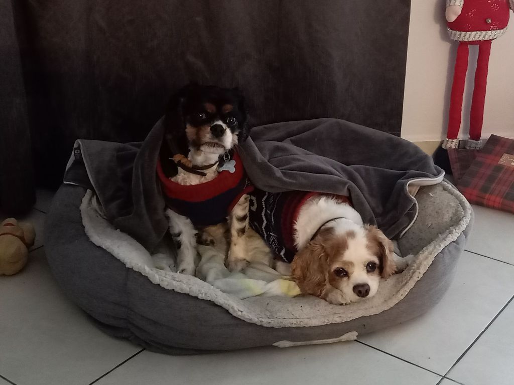 Captain Caveman went to the barbers for a shave, I headed over to Emrah’s new hairdressers for the first time since he moved. As I was leaving home I’d noticed the water was off and, unfortunately, it was the same at Emrah’s. It didn’t stop him and he simply got on with dying my hair, this time I’d gone for something a bit warmer and a mix of 2 colours. It was raining hard outside and as I sat catching up on my blog, Michele came in for a trim. We had a chat and she mentioned that she was after photos of the shelter sponsored dogs wearing a Christmas hat, for a Facebook post. I volunteered Captain Caveman and I to go up, as long as she could lend us a Christmas hat.