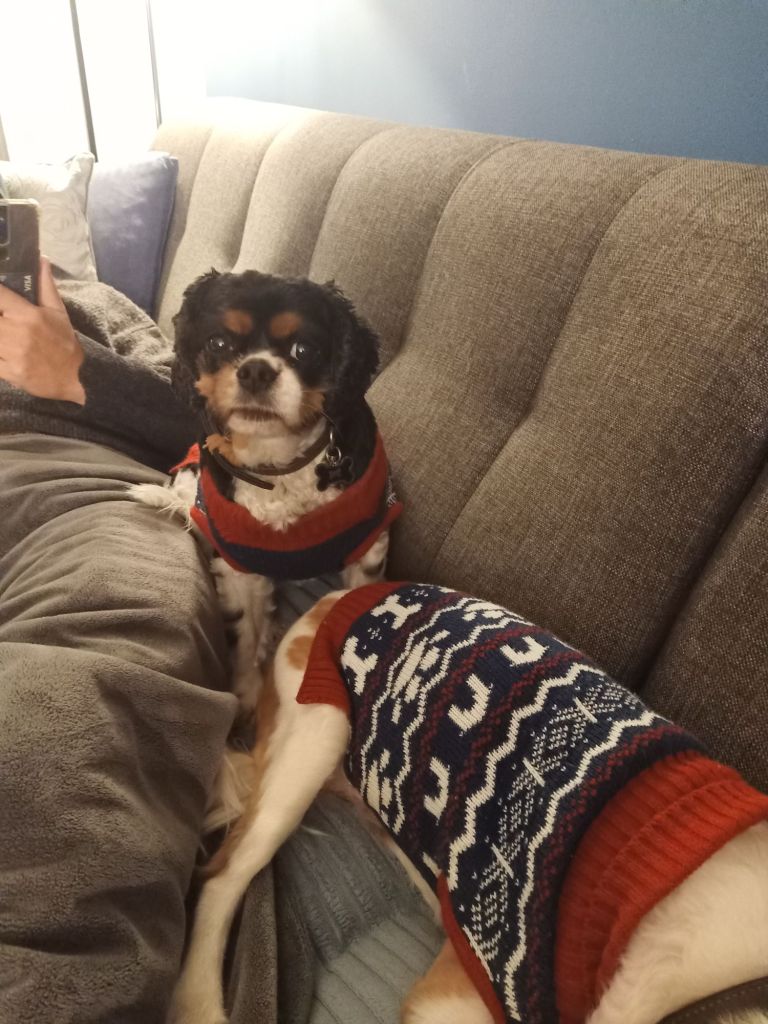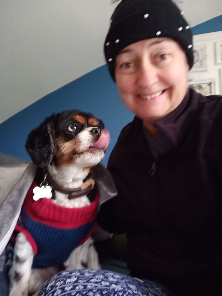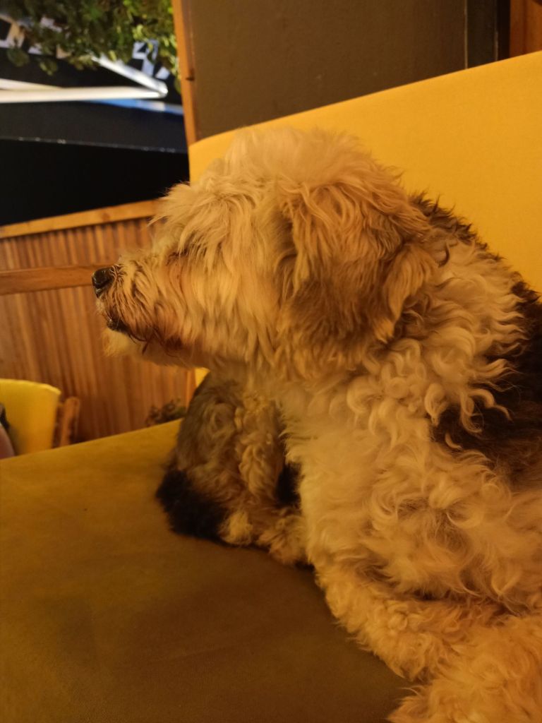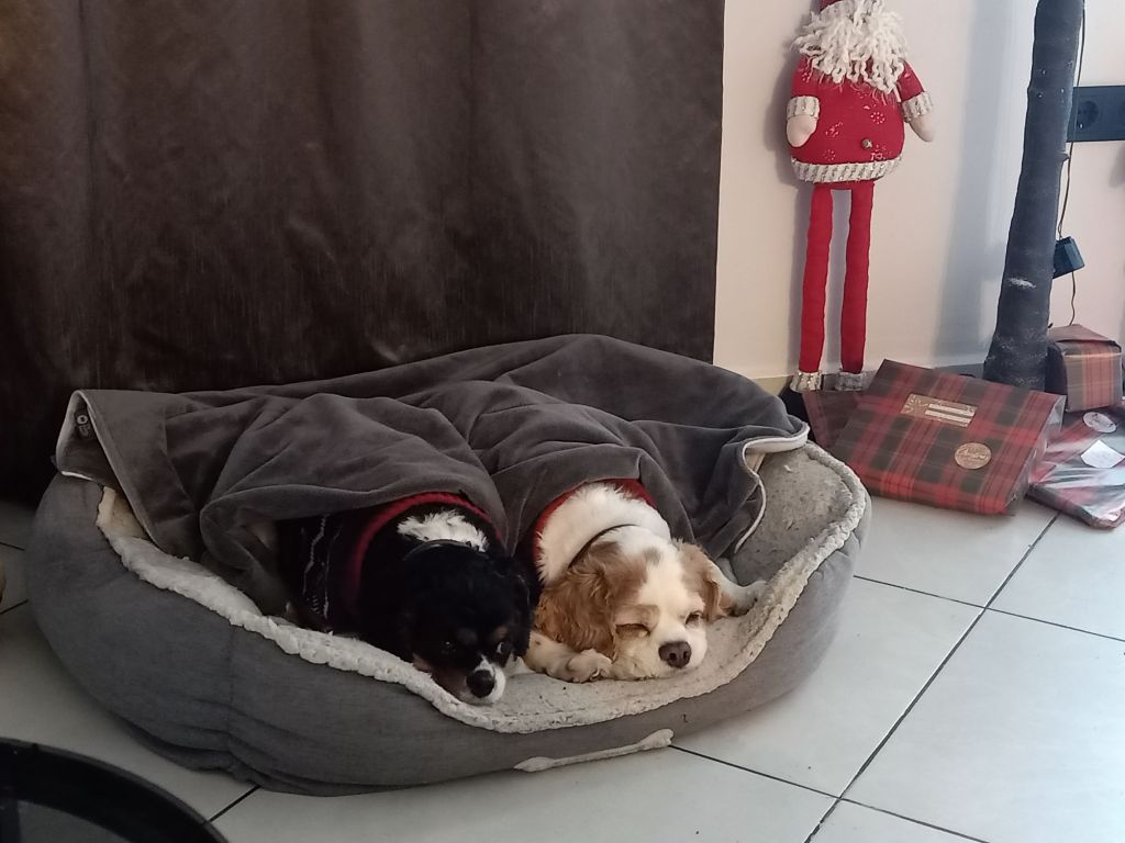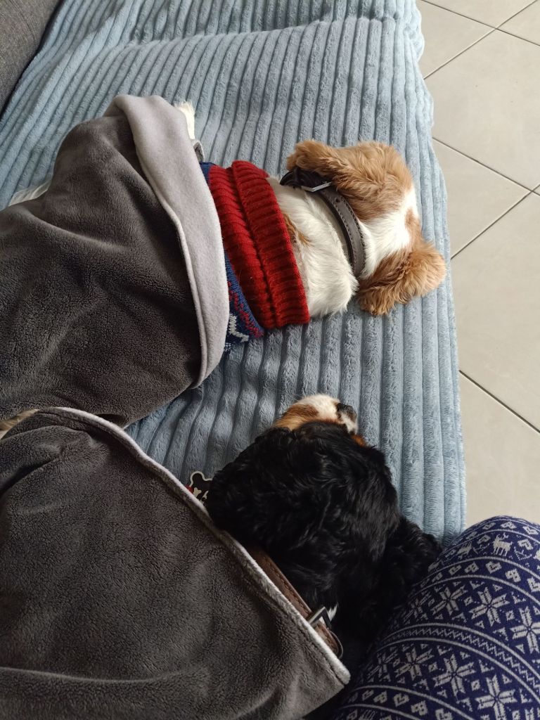 Captain Caveman went to the barbers for a shave, I headed over to Emrah’s new hairdressers for the first time since he moved. As I was leaving home I’d noticed the water was off and, unfortunately, it was the same at Emrah’s. It didn’t stop him and he simply got on with dying my hair, this time I’d gone for something a bit warmer and a mix of 2 colours. It was raining hard outside and as I sat catching up on my blog, Michele came in for a trim. We had a chat and she mentioned that she was after photos of the shelter sponsored dogs wearing a Christmas hat, for a Facebook post. I volunteered Captain Caveman and I to go up, as long as she could lend us a Christmas hat.