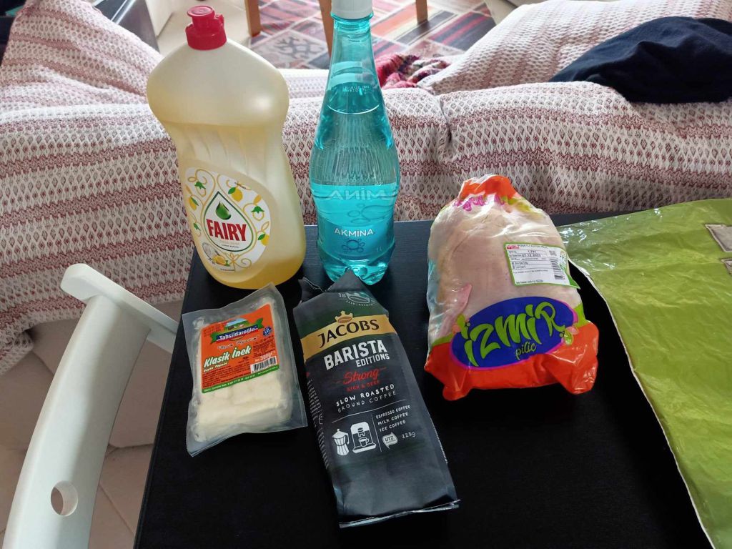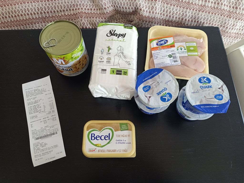 I was already on over 50 syns from yesterday but chose to eat crisps! Captain Caveman came back, showered then popped to the shops as I’d decided we were having curry tonight. Here’s what Captain Caveman bought and the prices in lira;