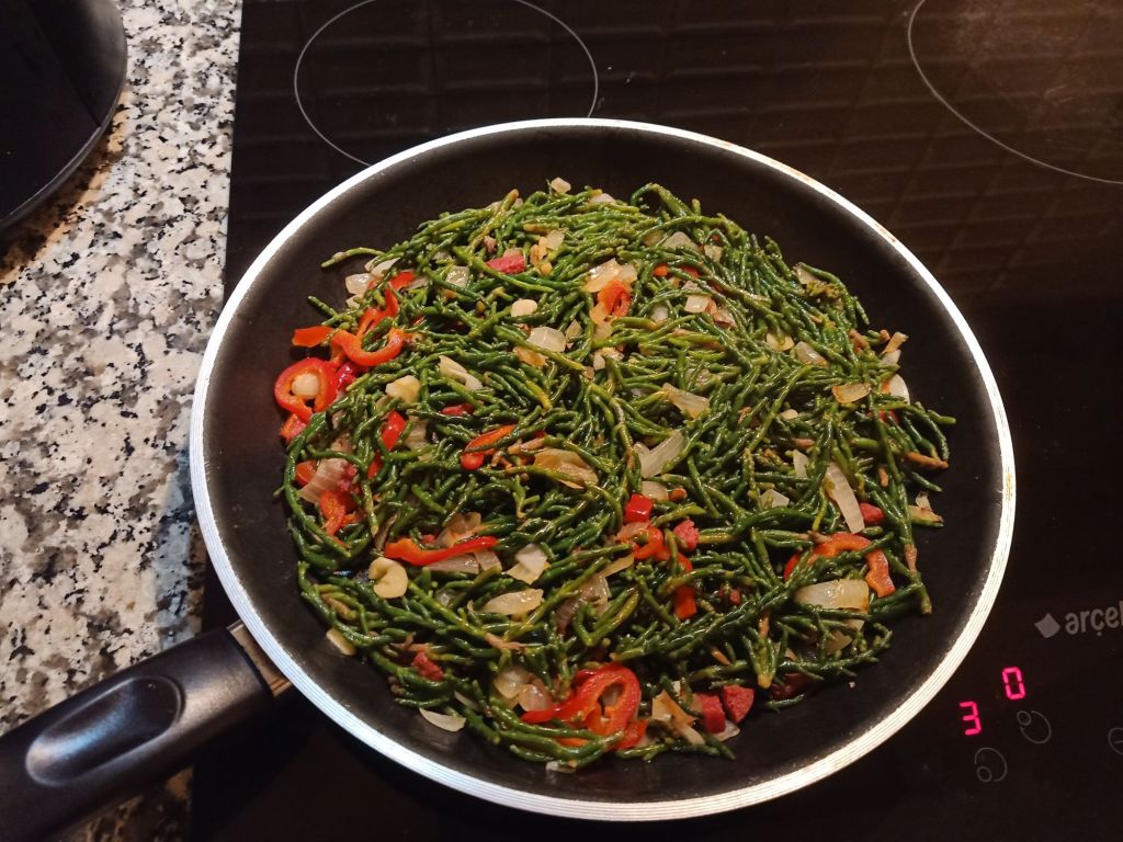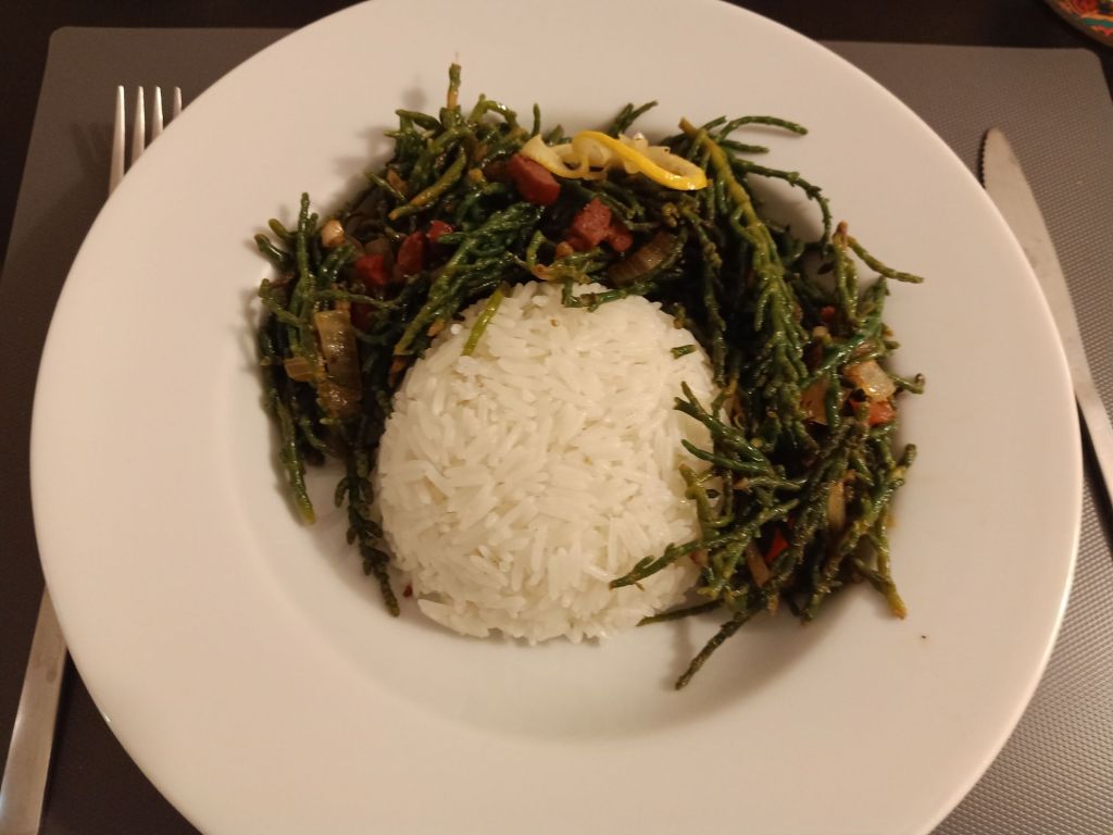 I worked from 10am until 3.30pm while Captain Caveman went Dogging. When he got home he made us a chicken and vegetable pasta for lunch. That evening I made a samphire dish, a new first for me, and it turned out not too bad. I cooked it with garlic and peppers but I didn’t realise I had to take out all of the stalks, including the finer ones. It took some getting through but we ate it and it was quite good. Next time I’d have it more of a side dish and less at a time as its incredibly salty.
