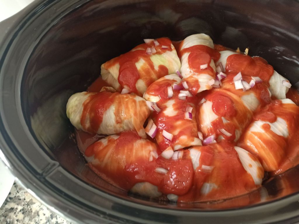 I was pleased with that and decided to pop a new recipe in the slow cooker for cabbage rolls. Caroline had never got round to cooking the cabbage, or sharing her recipe, so I had loads of it to use up. I just had fruit to eat for lunch so that I was syn free until weigh-in at 3pm. Carol’s scales showed that I had lost 0.4kg (0.9lb) which wasn’t bad considering the week I’d had.