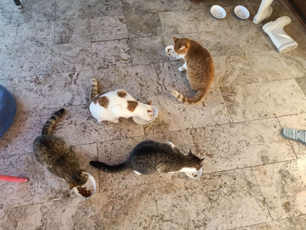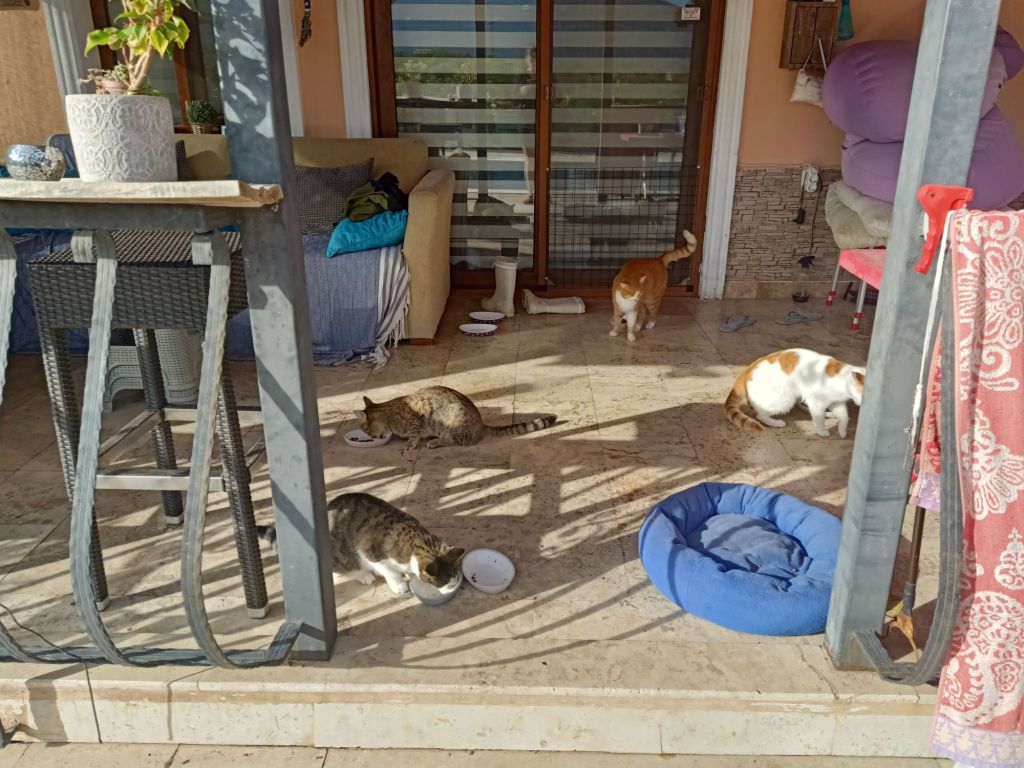 On Friday 17th November Jamie was off to England for 12 days so Captain Caveman and I were moving in to his villa to look after Norman and Edna. Before that, I had a bit of cat drama; Kate and her birthday entourage were heading back from Jiva Beach this afternoon so it was my last time of feeding her cats. When I arrived there was a bit of a surprise as the box that all the wet and dry food had been stored in, was on the garden. The cats had obviously worked together to feed themselves when I’d been 45 minutes late and had ransacked the stash. I took photos to send to Kate, who later replied to say it wouldn’t have been her cats who did it and maybe a stray dog did! One of the babies had a scratched nose and Casha was trying to tell me who was to blame!