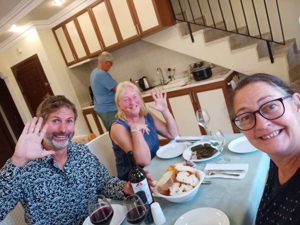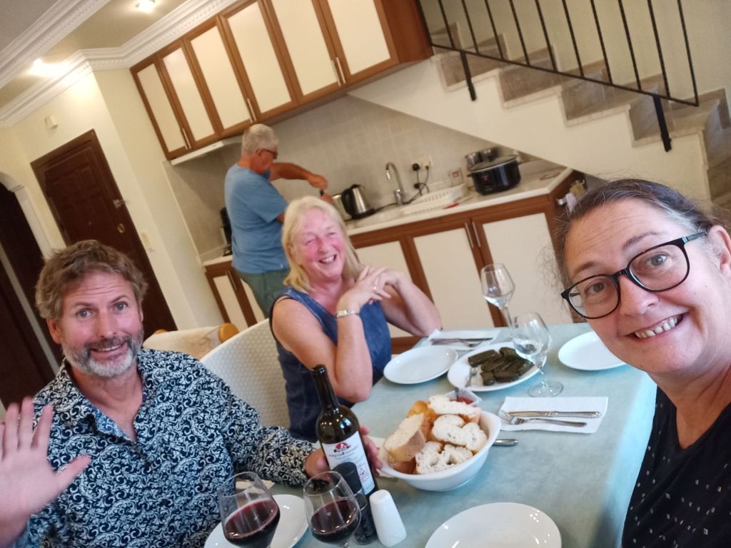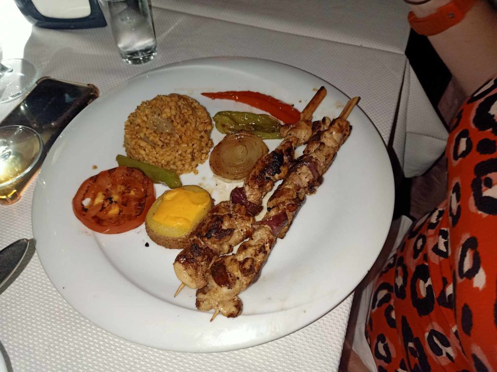 I cracked on with work on Tuesday 7th November and had already done over an hour’s work by the time Captain Caveman left for Bridge. For lunch I had more left over veggie curry with egg fried rice. I decided, as I’d lost quite a bit of weight (just over a stone), I’d have a sort out of my clothes that were too big and either sell them or put them in the charity bag. As I my earnings had reduced, but with Captain Caveman here and friends visiting, I could do with some extra beer money to supplement my income. When Captain Caveman got home he went to fetch a water refill then made a sandwich. Just as we were deciding what to cook for dinner, Caroline messaged to say she was on her way back from Göcek and would meet us at Tez bar for sundowners and would like to go out for a meal tonight. We were up for that, as it was her treat and to say goodbye. I did say she would miss sunset but we agreed to meet at Tez bar. My parents love a Tez-pat sundowner so they were up for it and we then made our way over to Okyanus for dinner. We shared some amazing starters of samphire, halloumi, stuffed mushrooms, carrot dip, beetroot, bread and Dad had soup. For mains, Captain Caveman and Caroline both had stuffed veggie dishes, Dad ordered casserole, Mom a peppered steak and I had a chicken shish. We had a great meal and, as the portions were generous, we took quite a bit of it home. By the end of the night Caroline had found a stray cat to pet and we were all ready for bed. I was particularly tired and I wanted to be up early for work tomorrow, so that I’d be finished in time for Fat Club.