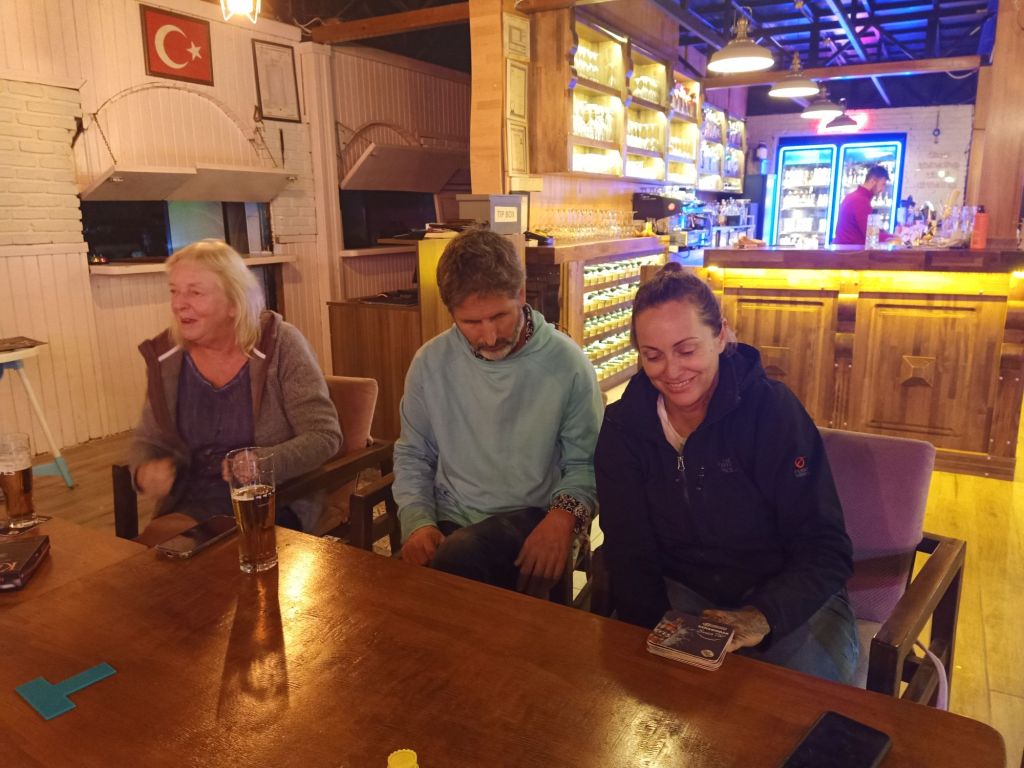 In the evening we went to meet our next lot of Australians, who had come from Vietnam to visit Turkey during the winter season. Veronika, Ben, Bich and the 2 boys were in Dalyan for a short stay and had been in Capadoccia. Caroline had made it there but they unfortunately didn’t get to meet as, on day one, Caroline had a knee injury and had to fly back to Vietnam. The Le Mitchell family, who we know from Phong Nha Farmstay and Victory Road Villas back in Phong Nha, were checked in to the Smyrna hotel and met us at the restaurant opposite, M-Eyhane, for dinner at 7pm. My parents also joined us as they hadn’t seen our friends for quite some time. We all ordered a mixture of starters and mains and, as is usual with a group of 9, Dad ordered the wrong thing and didn’t enjoy his main course. It didn’t help that there was a power cut and we had to eat by our phone torches but Dad has trouble seeing his food anyway. The white wine was very good and went down well as it was only 100 lira (£2.82) for a decent measure! It was great to see everyone and hear about how much they had been enjoying Turkey so far. After saying goodnight, my parents, Captain Caveman and I had a quick drink in Cafe Ivy. We had to get back for the dogs so I wasn’t up for a late one, however, my parents got talking to an English couple and didn’t leave until way past midnight. It had been 5 weeks since we had all arrived back in Dalyan and it was good to see my parents making the most of their holiday.