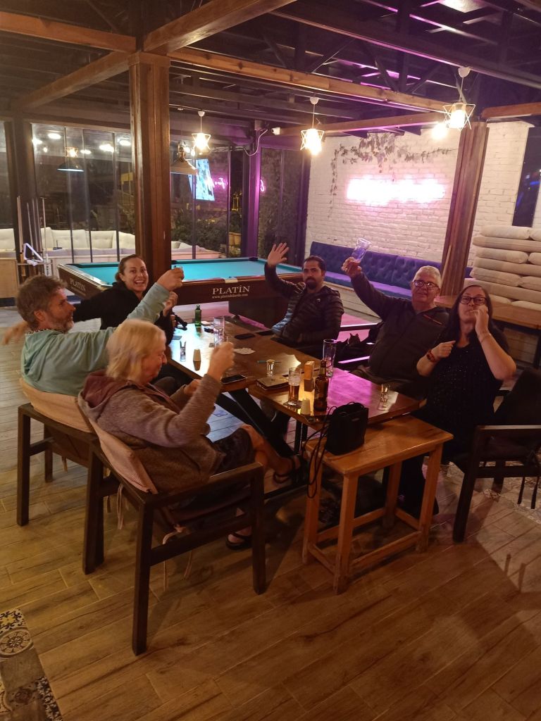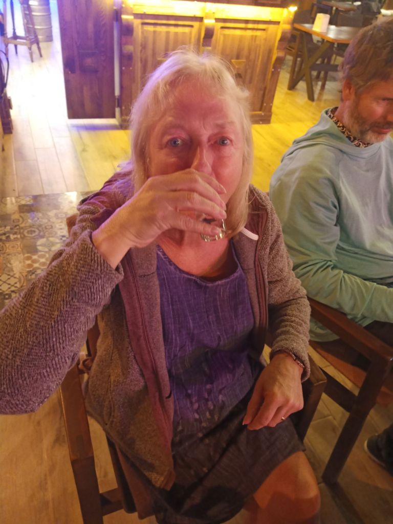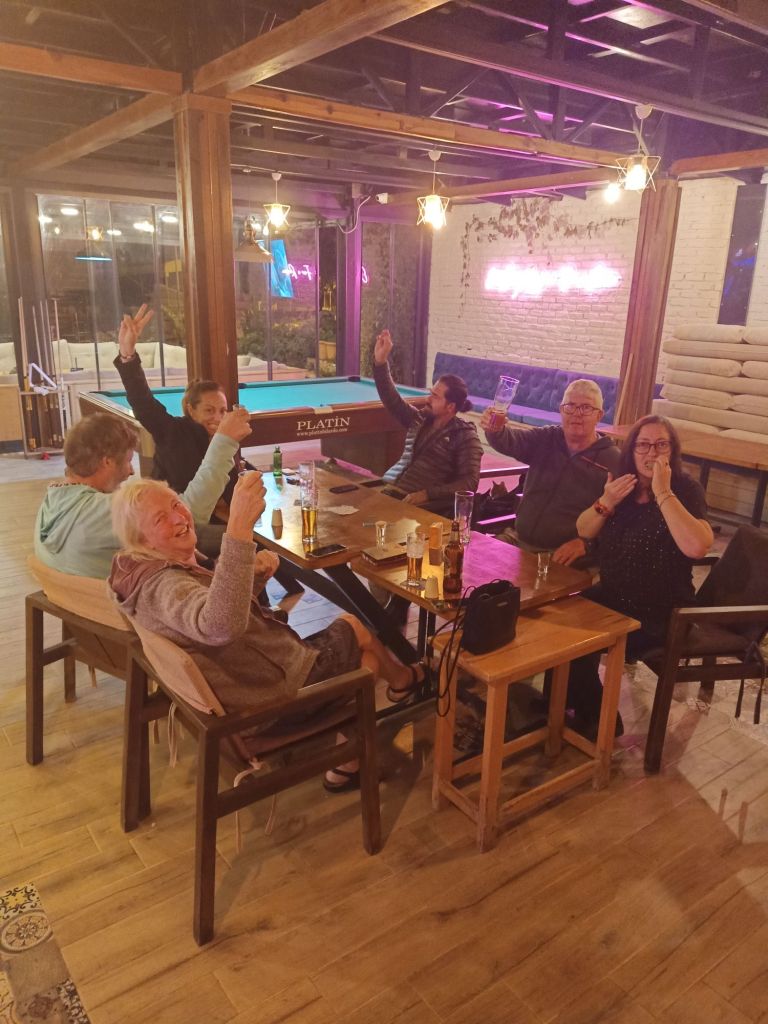 While we were out, we had a message from Caroline to say to meet her at Tez bar, to have a drink before her flight tomorrow. It was raining still so Tez was closed, as were most places so Caroline said she was already at Tapa and to come there. All 4 of us got our coats on and headed down to Tapa bar. The night took a random turn where we ended up playing games, doing tequila shots, singing ‘Sweet Caroline’ (more than once), razzing around on a kid’s scooter and playing pool. Dad and I beat Mom and Ali, the owner, and we didn’t leave until gone 1.30am.