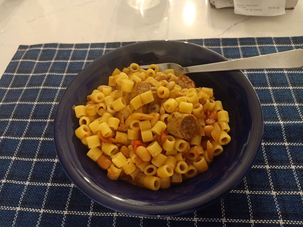 It was a cheap and cheerful lunch which we all enjoyed, especially as we saw a turtle in the river as we sat and chatted. It was too quick for me to get any photos though. By the time we got home the rain was here, Caroline’s plans for a Saturday night out were scuppered as I told her we were staying in tonight. Captain Caveman made pasta which is one of his go-to meals – simple but tasty.