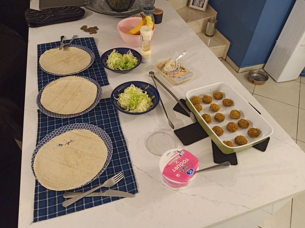 I had cheese on toast for lunch and, in the afternoon, Captain Caveman and I sat outside on the patio with the dogs as it was glorious weather. We enjoyed a nice rum (or 2) while sitting with Norman and Edna in the afternoon sun. For dinner I banged some ready made falafel in the oven and we had it with wraps, lettuce and some of that huge cabbage that was still going strong. I was a bit naughty again as Captain Caveman was having kaymak on bread and I couldn’t resist a piece too. I was already on 235 syns for this week so I was going to have to really be careful for the next few days, if I didn’t want to put weight on.