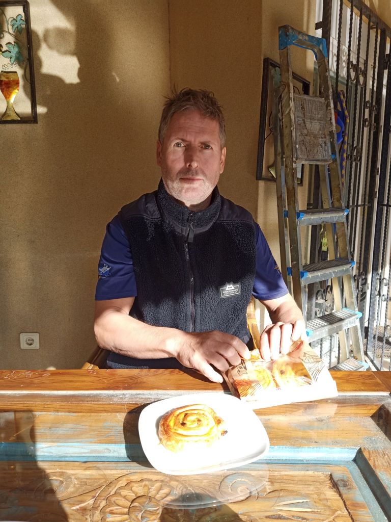 The dogs were a little sad that their parents had gone and I tried to speak to Captain Caveman about what was going on with the bike v bus palaver earlier. He didn’t think he was wrong, obviously, and he got more wine and some pastries out of the kitchen. Bill and Jaxx had told us to help ourself to wine and food but I didn’t want to take advantage, I never do.