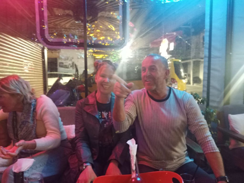 A few of us ordered the fish and chips at Mahir’s. I tried to be good and took most of my batter off, mainly because of my stomach more than the diet. Jaxx and I went thirds on a bottle of wine with Adele, then shared a bottle between the 2 of us. We had a lovely meal, I seemed to have made a full recovery and was feeling well enough to move on to the after party at Sofra bar. Adele, Carol and Ian went home as they had to be up early on Monday morning but the rest of us decided to move on for a bit of a drinking sesh.