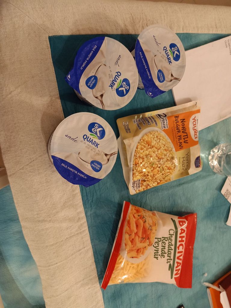 For lunch I had left over pasta Bolognese then for dinner I had chicken stir-fry with bulgur wheat and chickpeas. I had heard from one of the Fat Club that there was a restock of Quark and on offer so I went to the shop to get them and some cheese to make Carol’s pasties. Here’s what I bought and prices in lira;